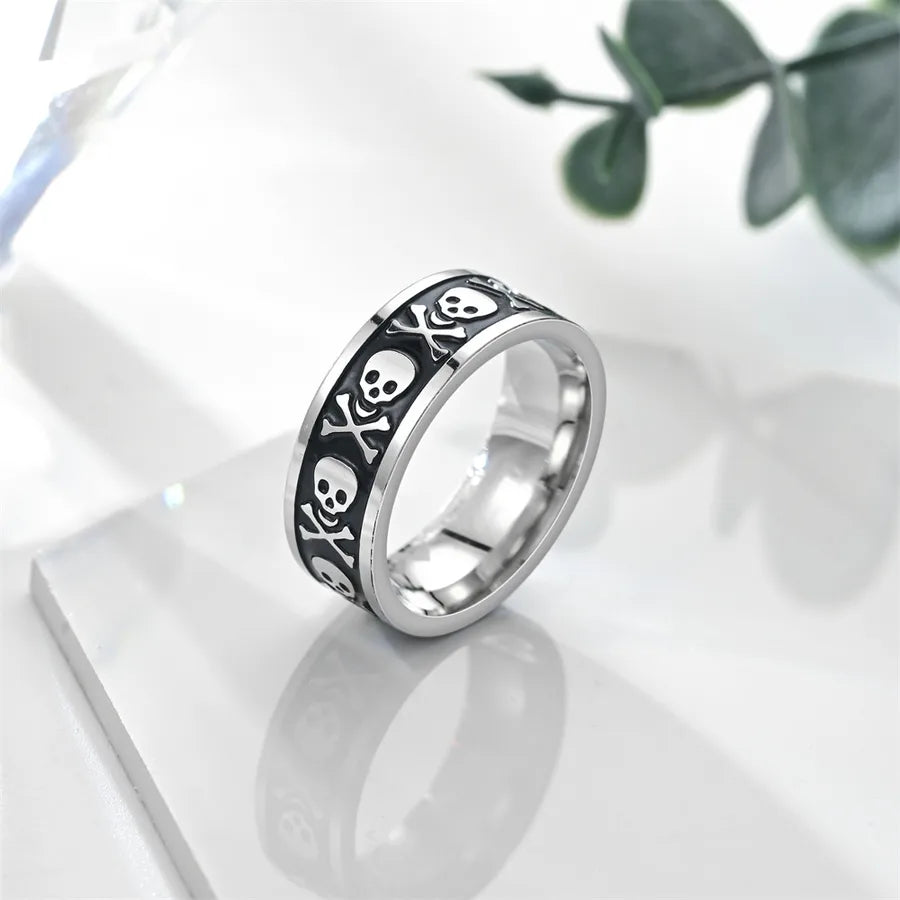 Hip-Hop Skull Titanium Steel Halloween Men's Rings - No. 7 / Xg538 Corrosion Smear Skull Ring