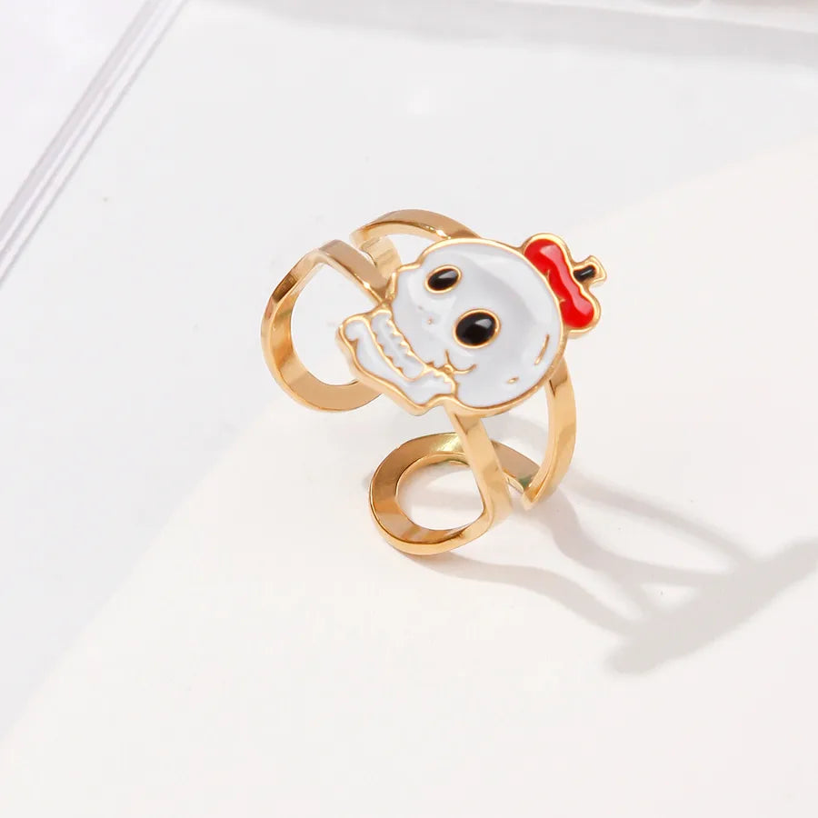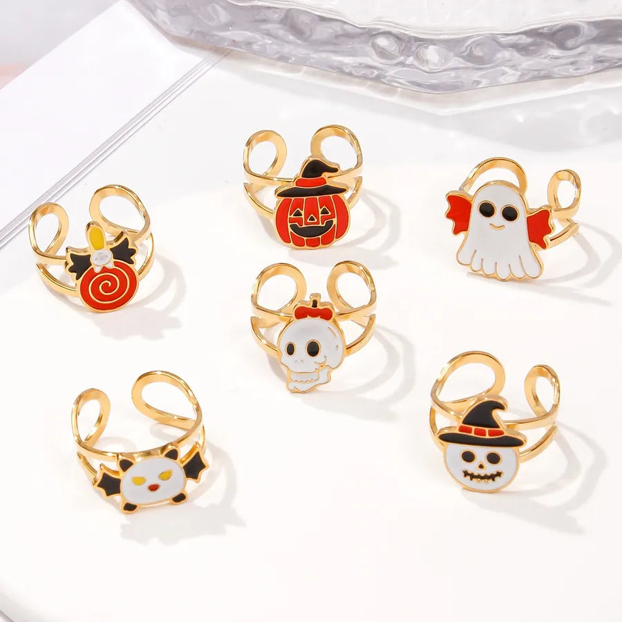 Stainless Steel Halloween Christmas Ring Fashion Universal Design Open Monster Ring Jewelry Cartoon Figures Pattern - Adjustable Opening / WJZ528-Classification of Nail Art Accessories