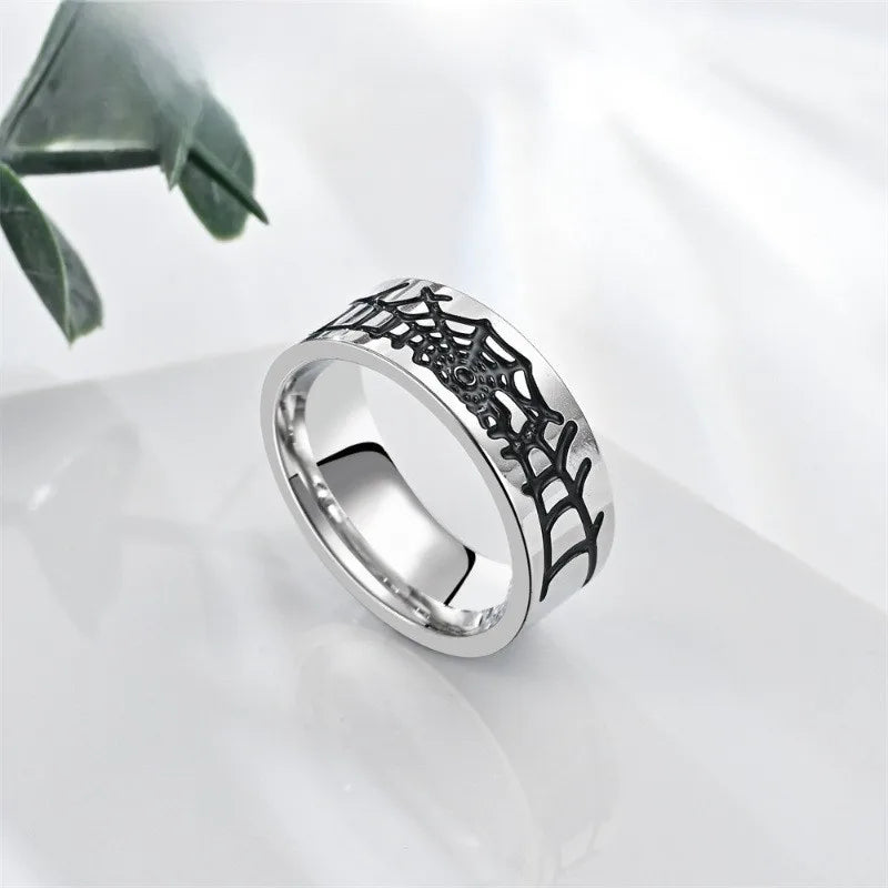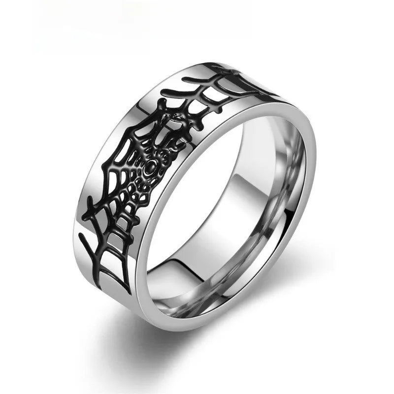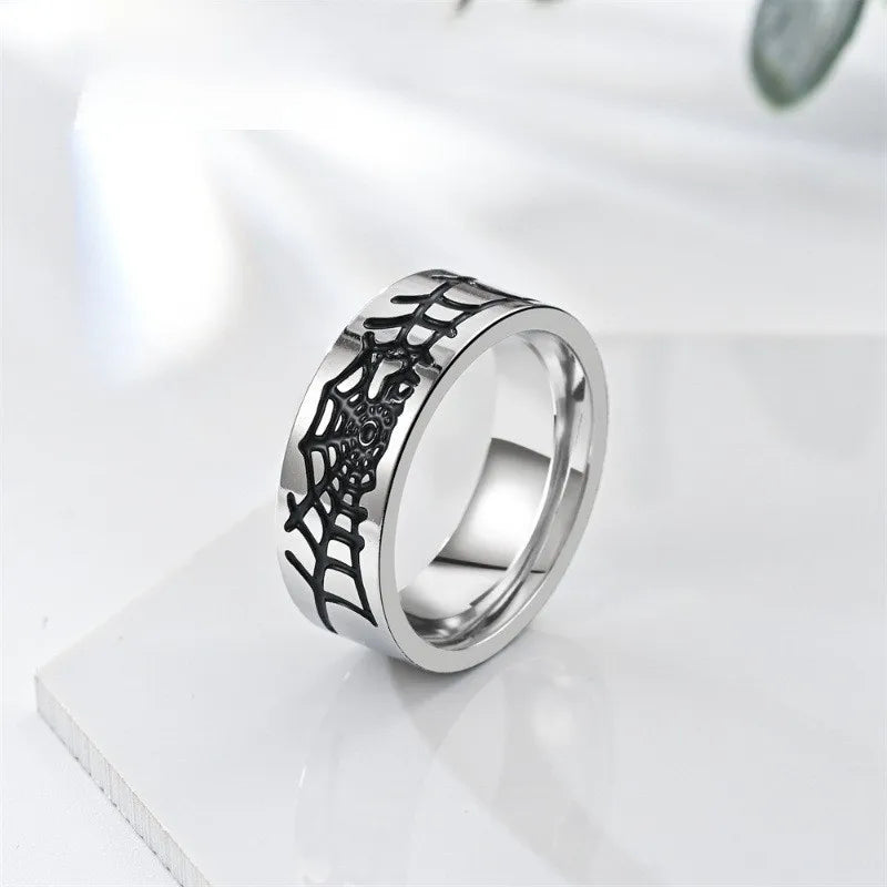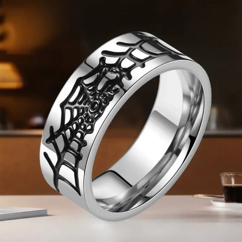 Titanium Steel Spider Web Halloween Ring Men's Jewelry Non-Fading Oiling Processed European Style Fashion Accessory - 7 / XG567 Corrosion Oil Spider Web Ring
