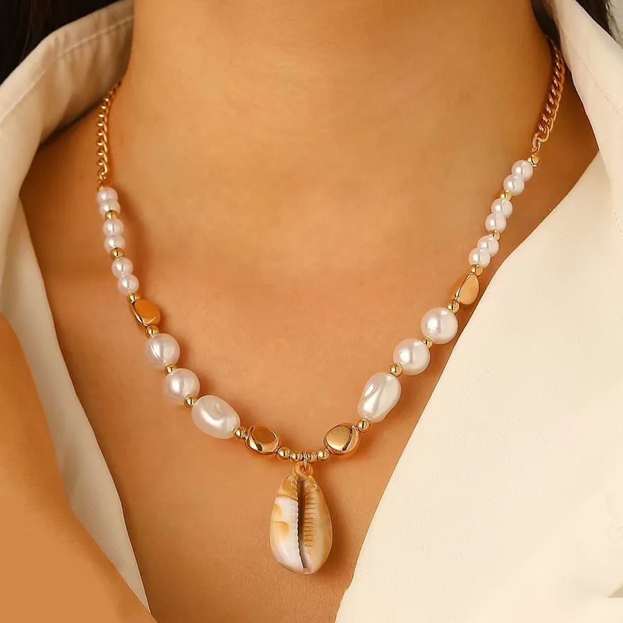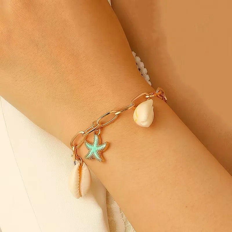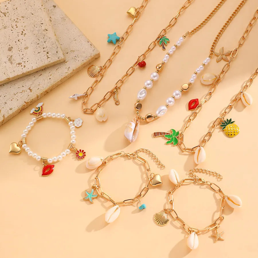 1 Piece 1 Set Elegant Lady Coconut Tree Starfish Conch Alloy Plating Women's Paperclip Chain Jewelry Set - 04 Starfish Conch Multi-Element Necklace, Bracelet Set