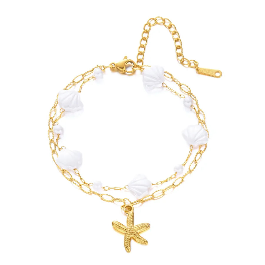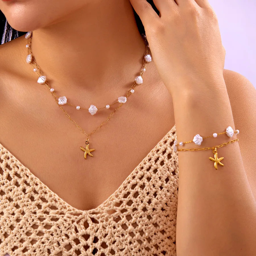 1 Piece Beach Simple Style Starfish Alloy Plating Women's cable chain Bracelets Necklace - Starfish Pearl Double-Layer Necklace