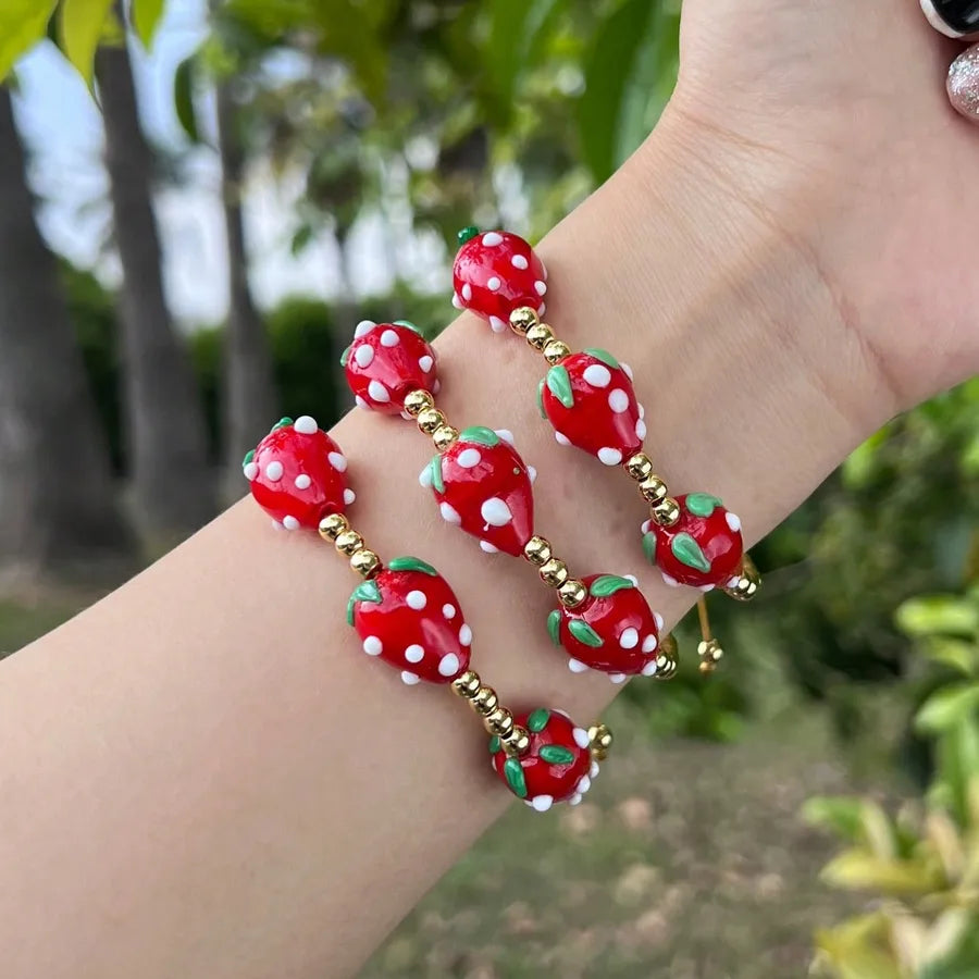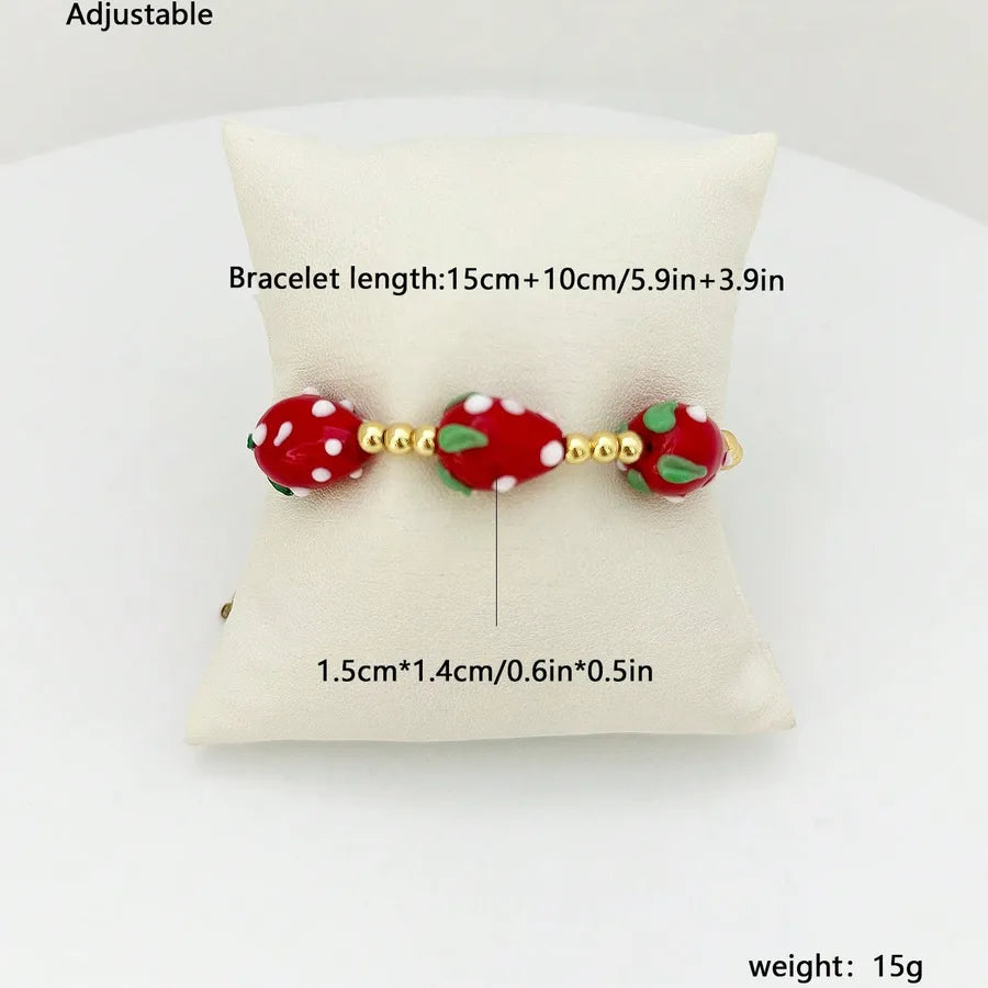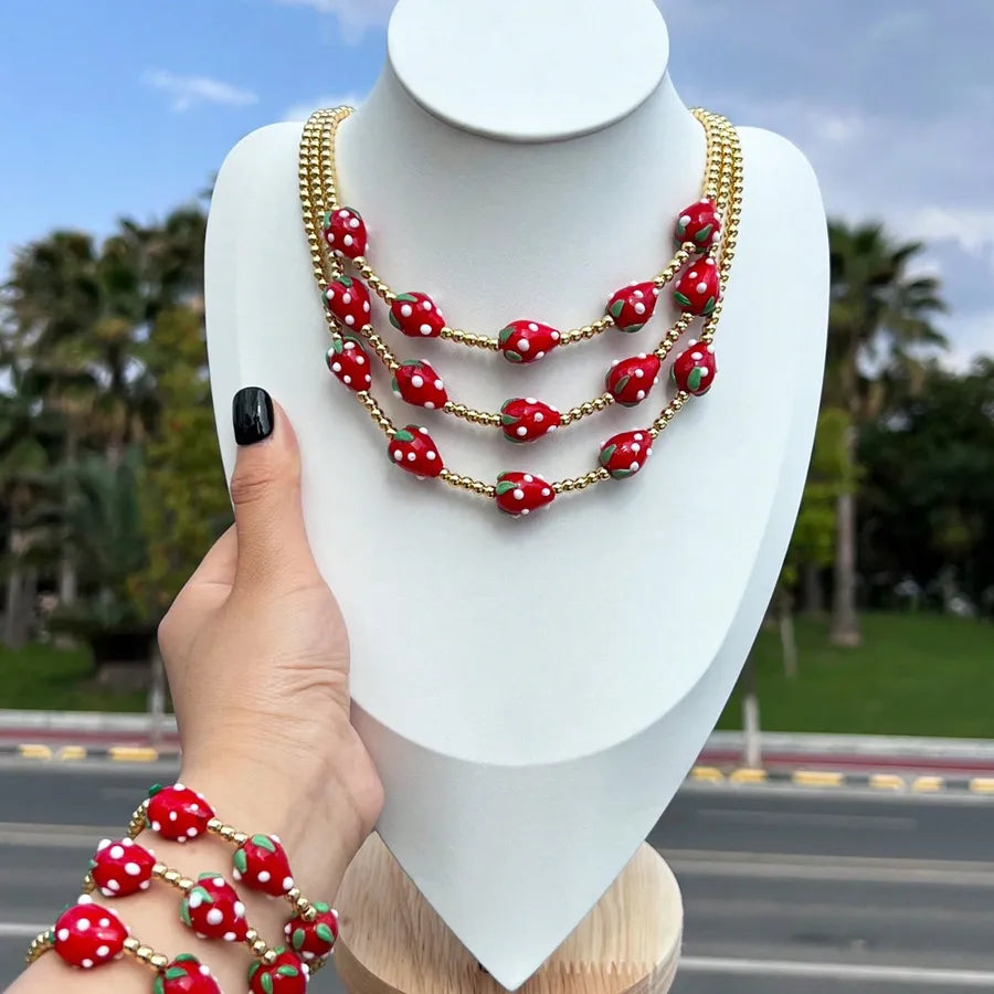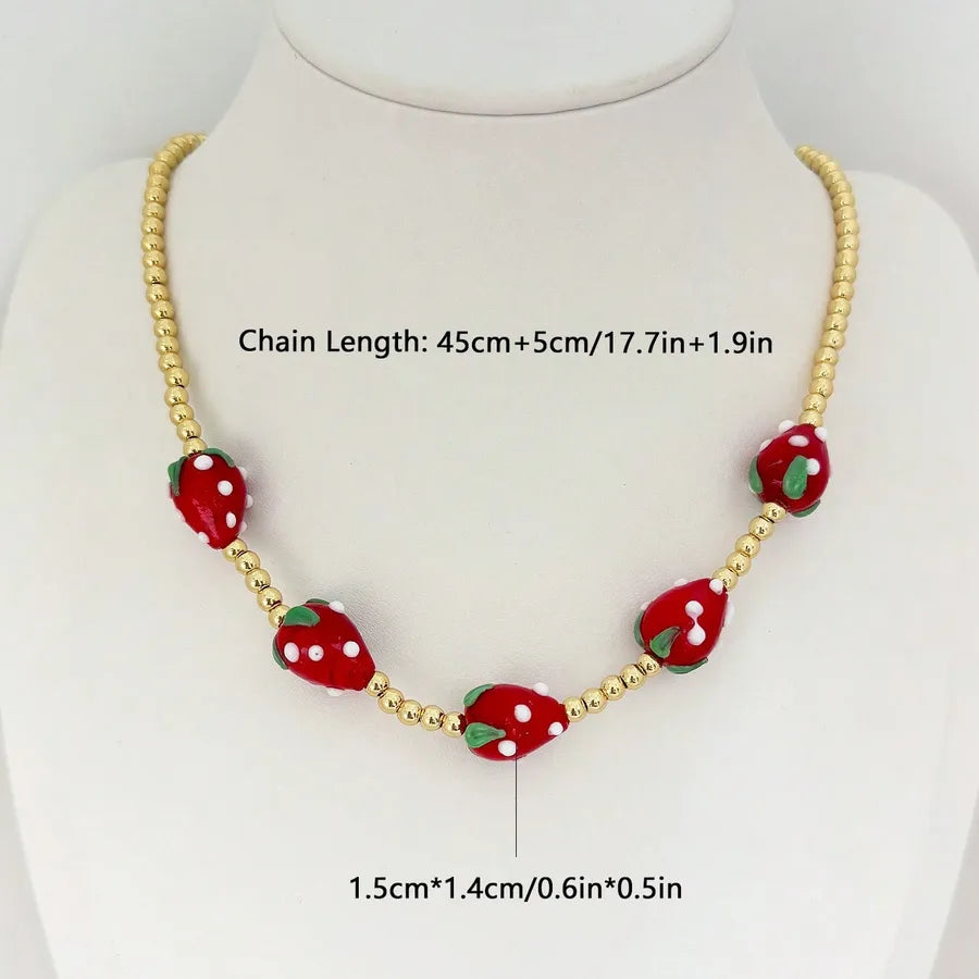 1 Piece Cute Strawberry Resin Brass Beaded 18K Gold Plated Women's Beaded Chain Necklace - Strawberry Necklace