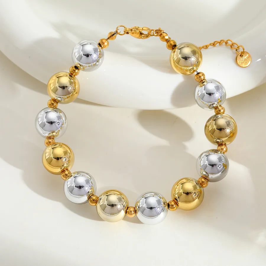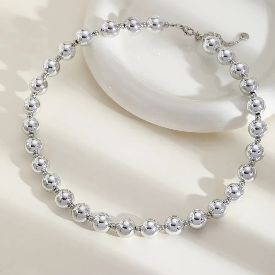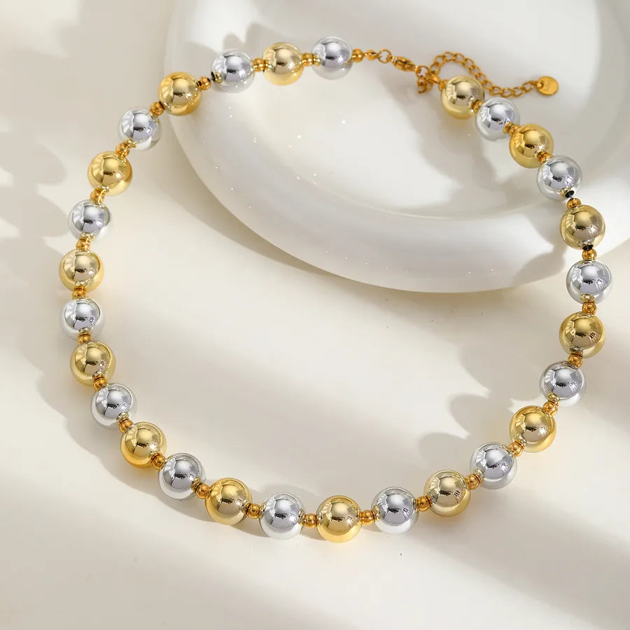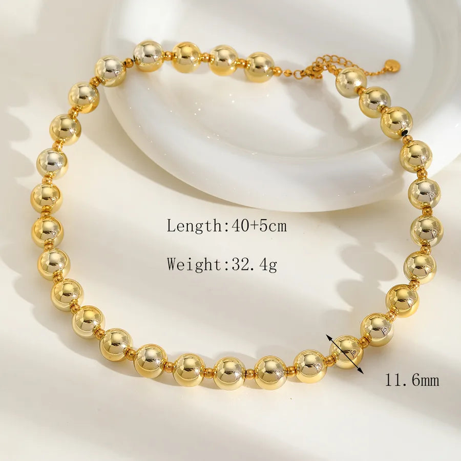 1 Piece IG Style Commute Solid Color CCB Beaded Women's Beaded Chain Bracelets Necklace - Full Gold-Necklace