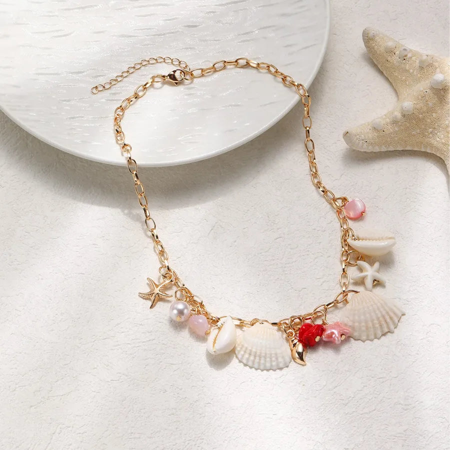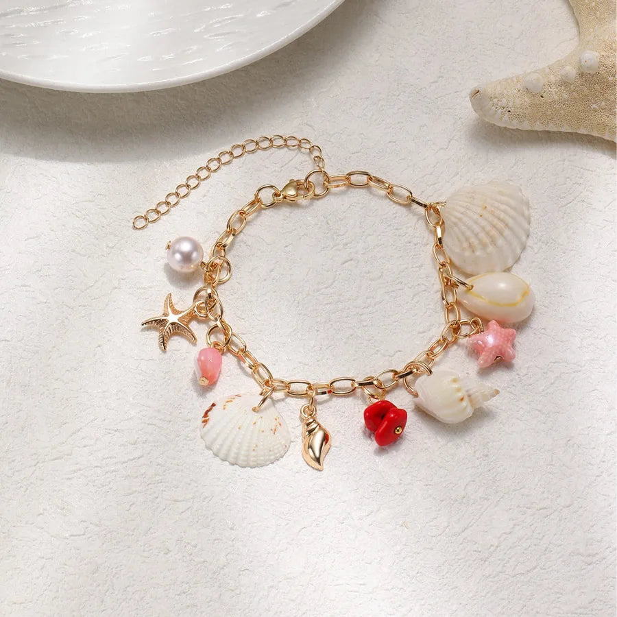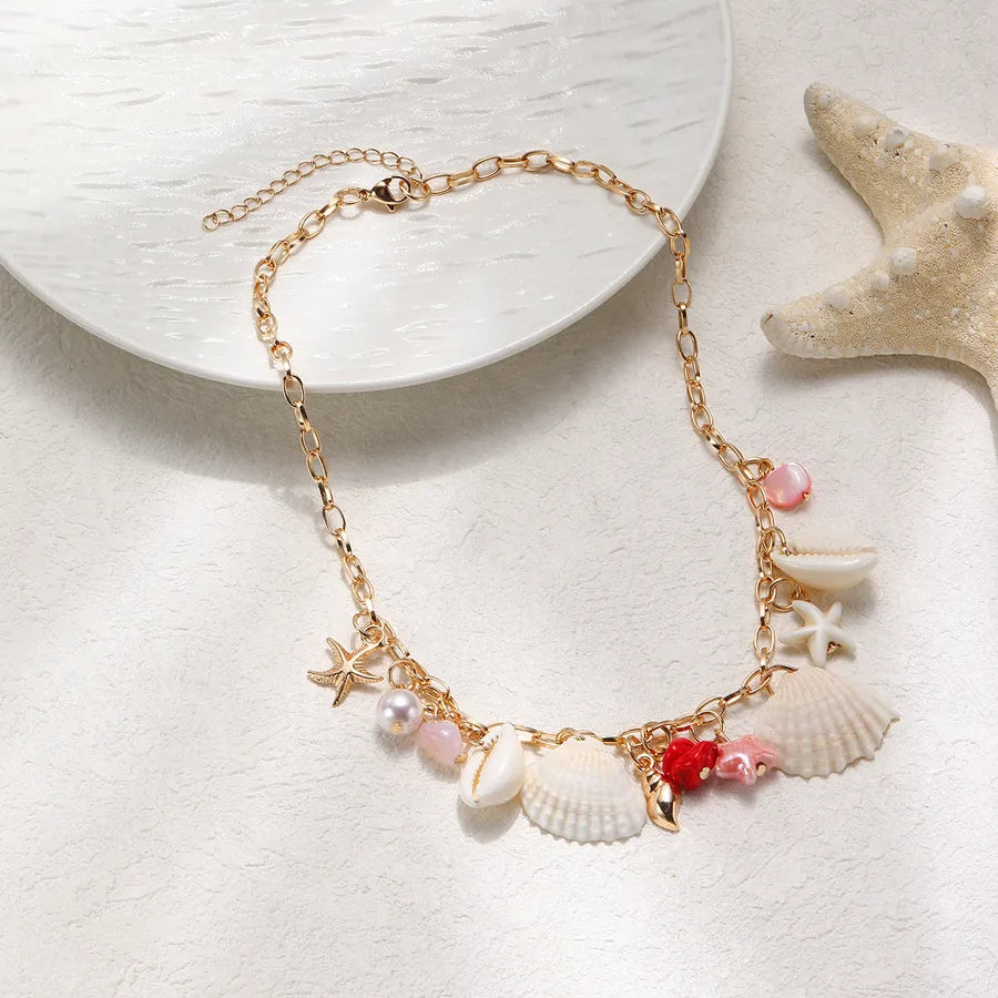 1 Piece Marine Style Starfish Conch Alloy Conch shell Women's cable chain Bracelets Necklace - J-13