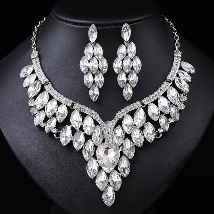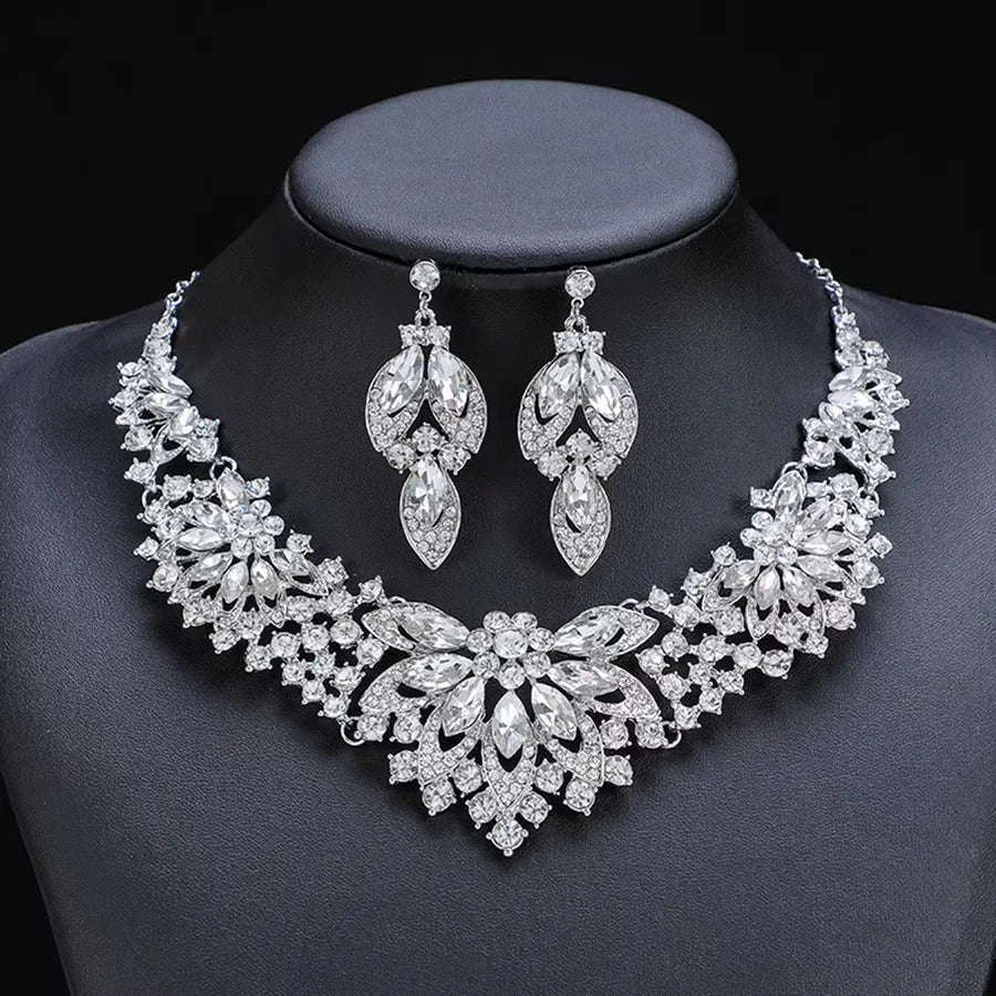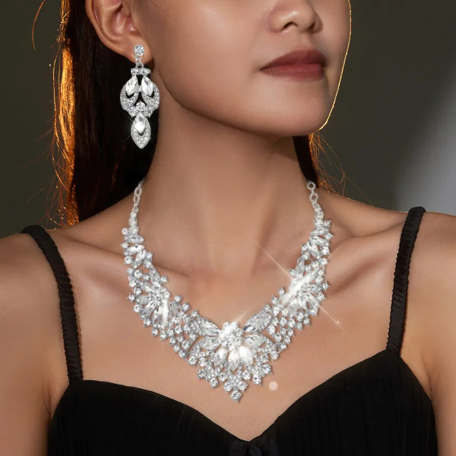1 Set Luxurious Wedding Bridal Geometric Zinc alloy Women's Jewelry Set - One Size / Silver / D27-44