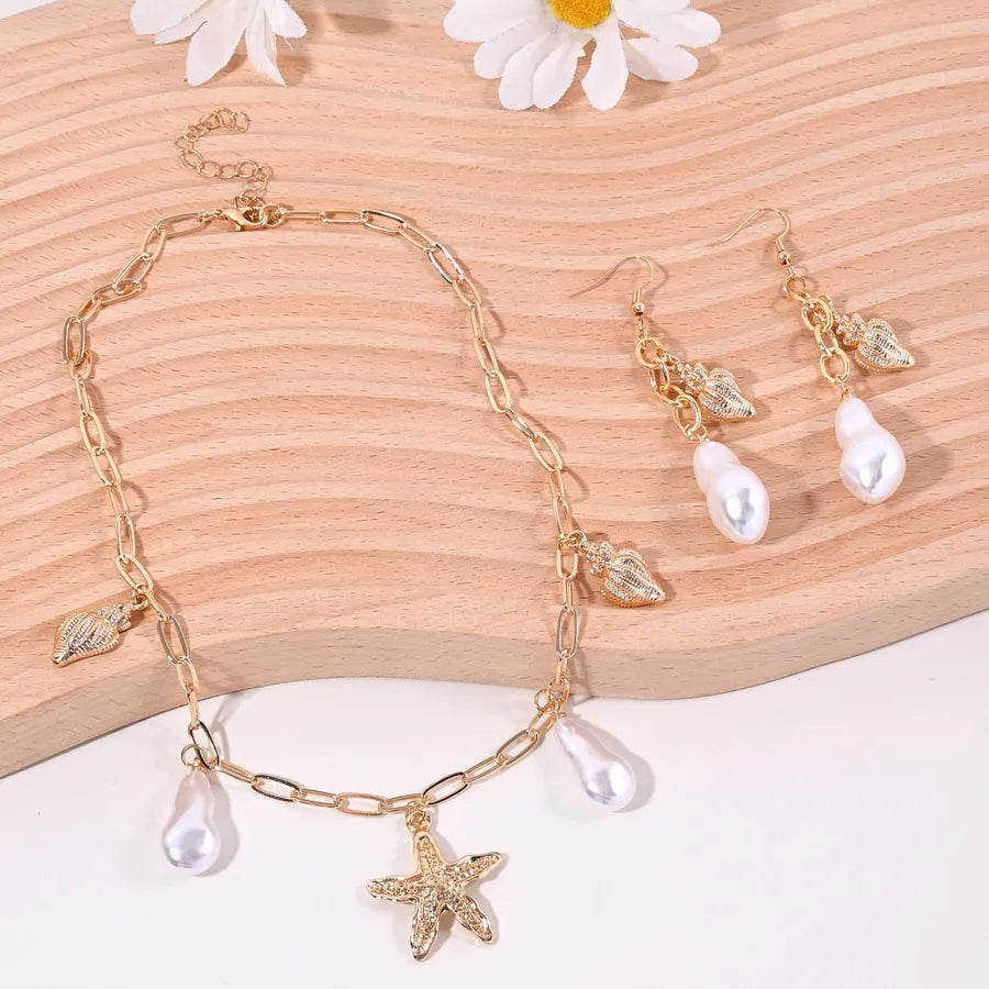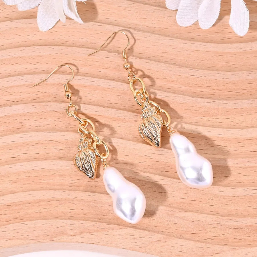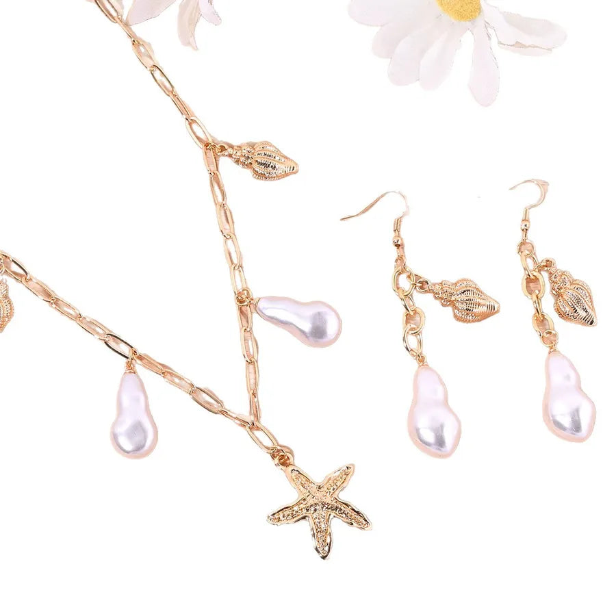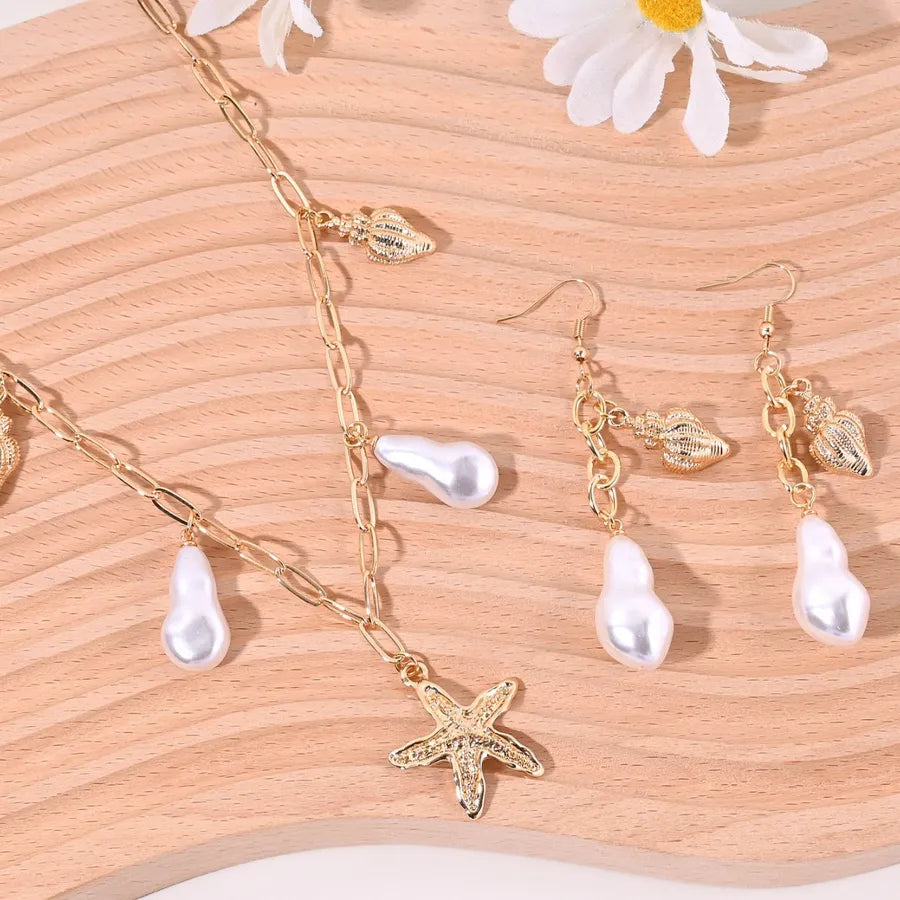 Baroque Pearl Shell Pendant Earrings Necklace Set Elegant Ocean Style Jewelry For Women Beachy Versatile Accessories