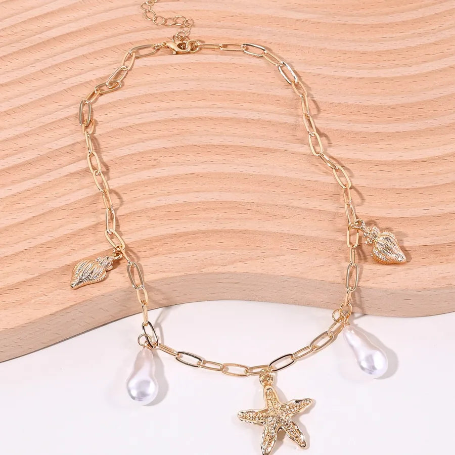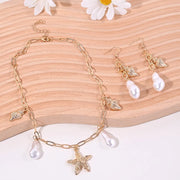 Baroque Pearl Shell Pendant Earrings Necklace Set Elegant Ocean Style Jewelry For Women Beachy Versatile Accessories - Earrings and necklace set