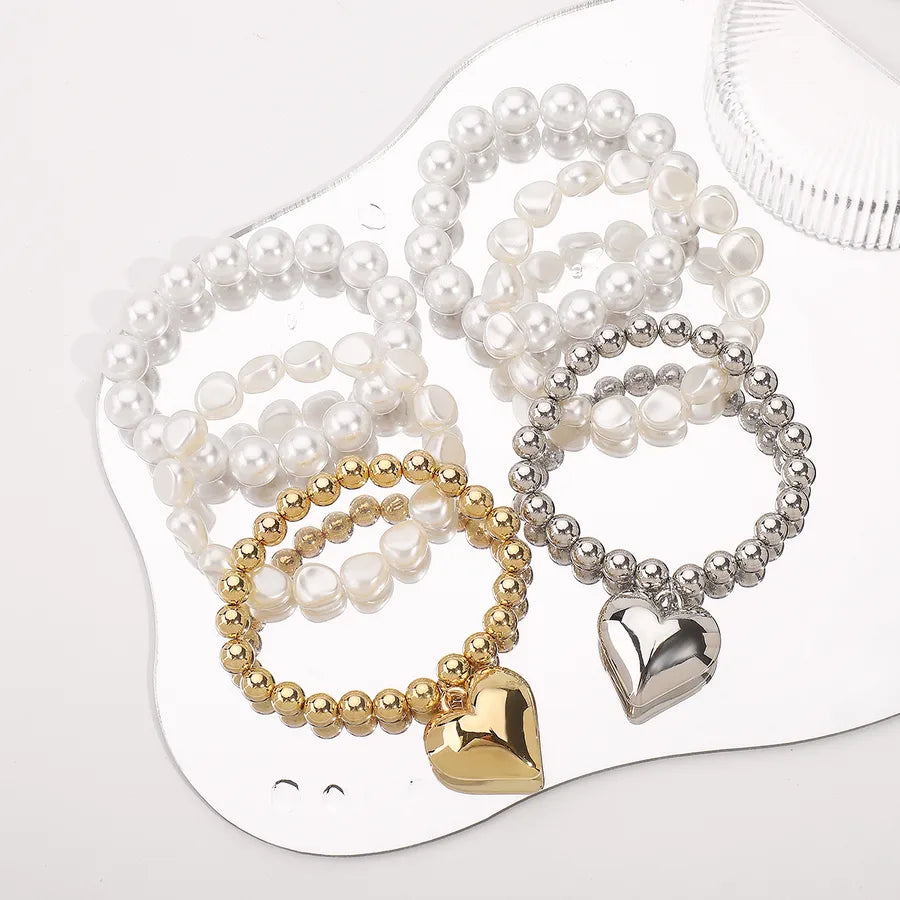 Elegant Commute Heart Shape CCB Imitation Pearl Beaded Women's Bracelets Necklace - Gold / Bracelets