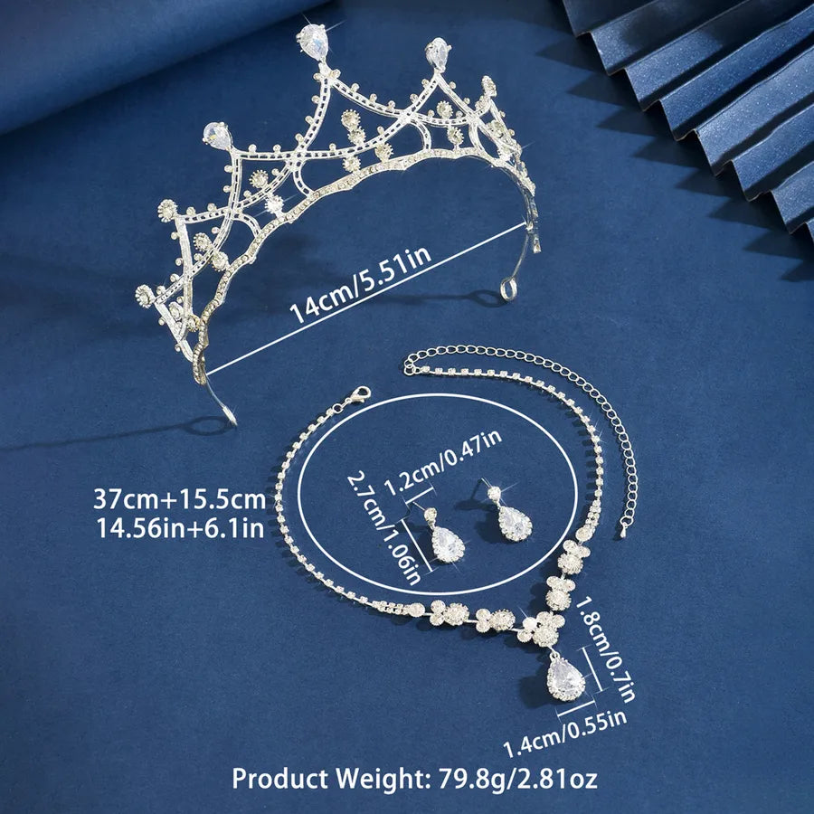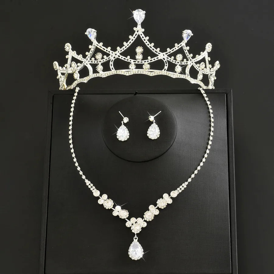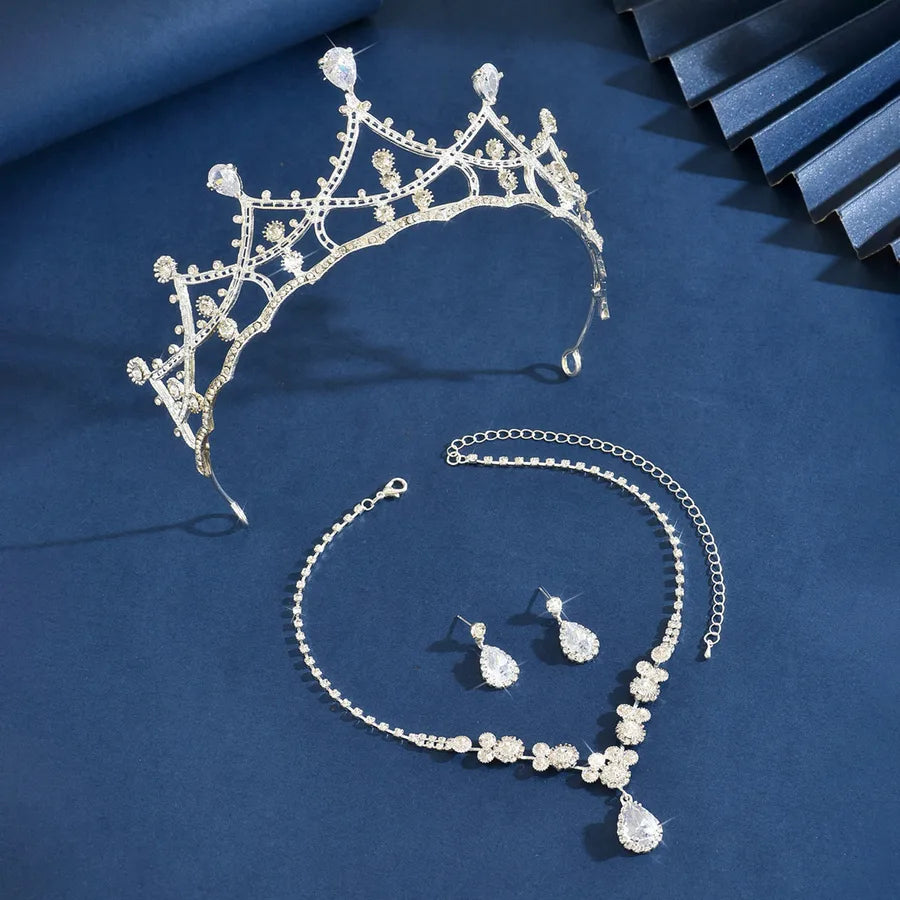 Elegant Princess Wedding Necklace Earring Crown Three-Piece Set Hair Accessory High-End Alloy Jewelry For Brides - 80864201 Crown Three-piece Set