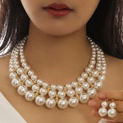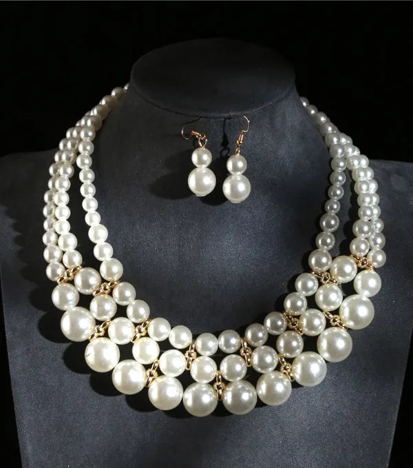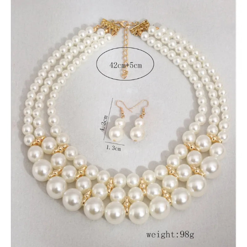 Ethnic Style Simple Style Round Imitation Pearl Alloy Beaded Women's Jewelry Set - Beige / 42cm
