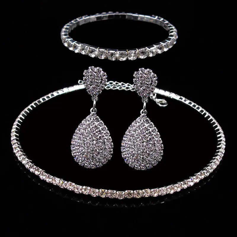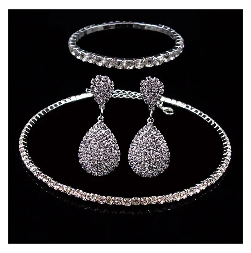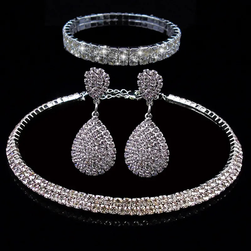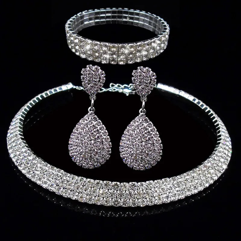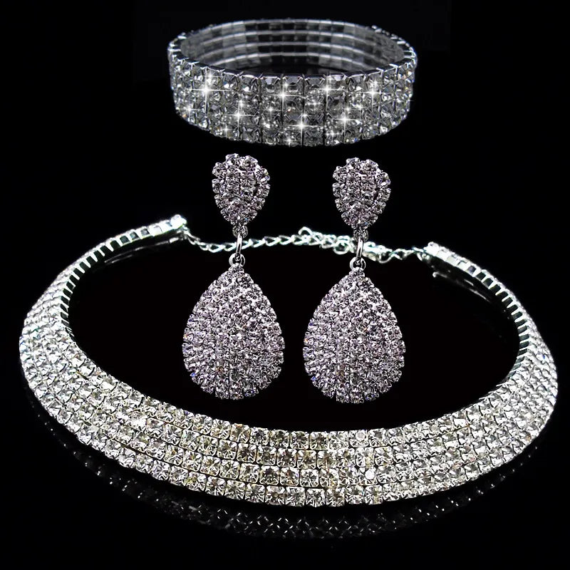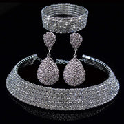 fashion printing rhinestone artificial gemstones women's jewelry set - 5 Rows of Collars + Bracelets + Earrings