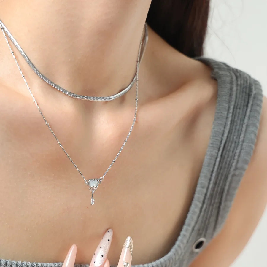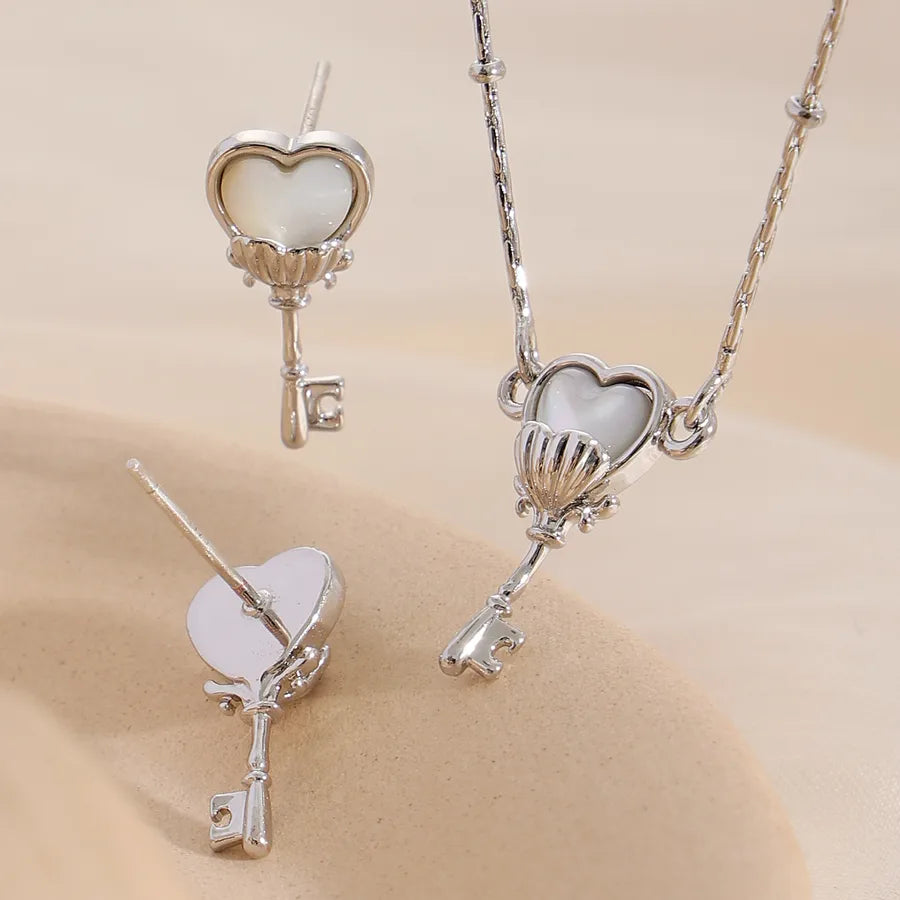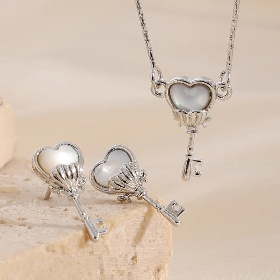 Fashionable Gold Plated Brass Necklace Key Earrings Set Non-Fading 25 Years New Women's Jewelry Love Heart Alloy Pendant