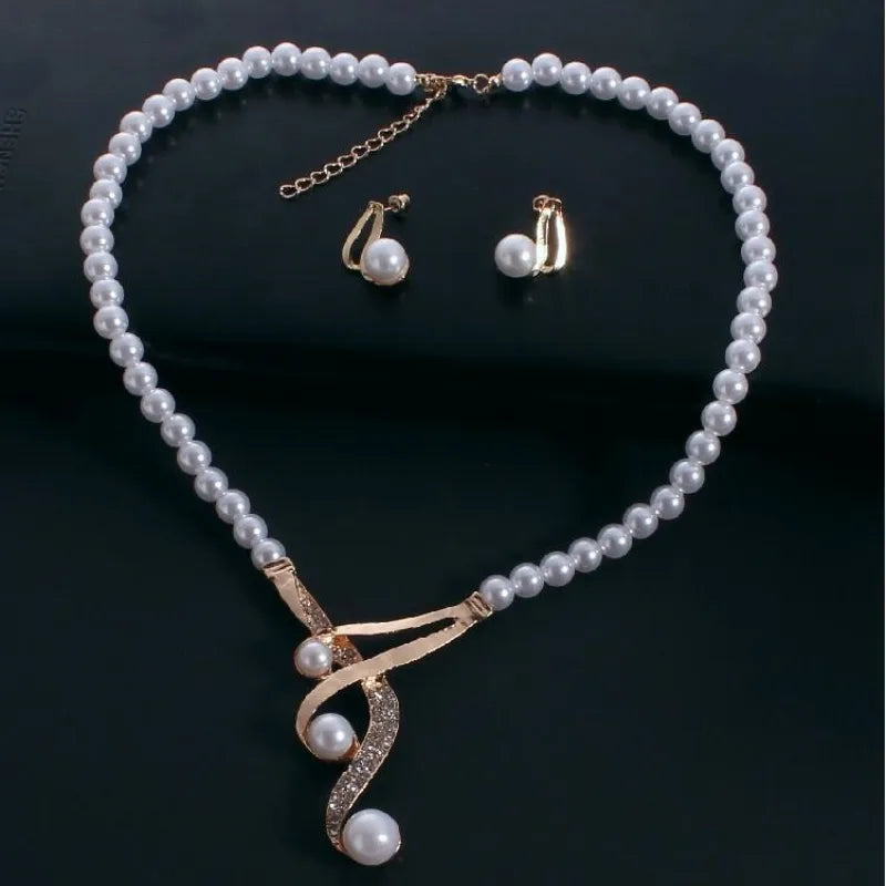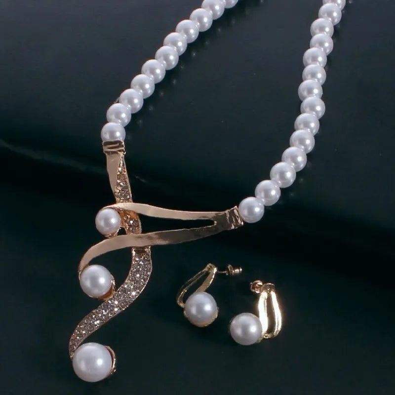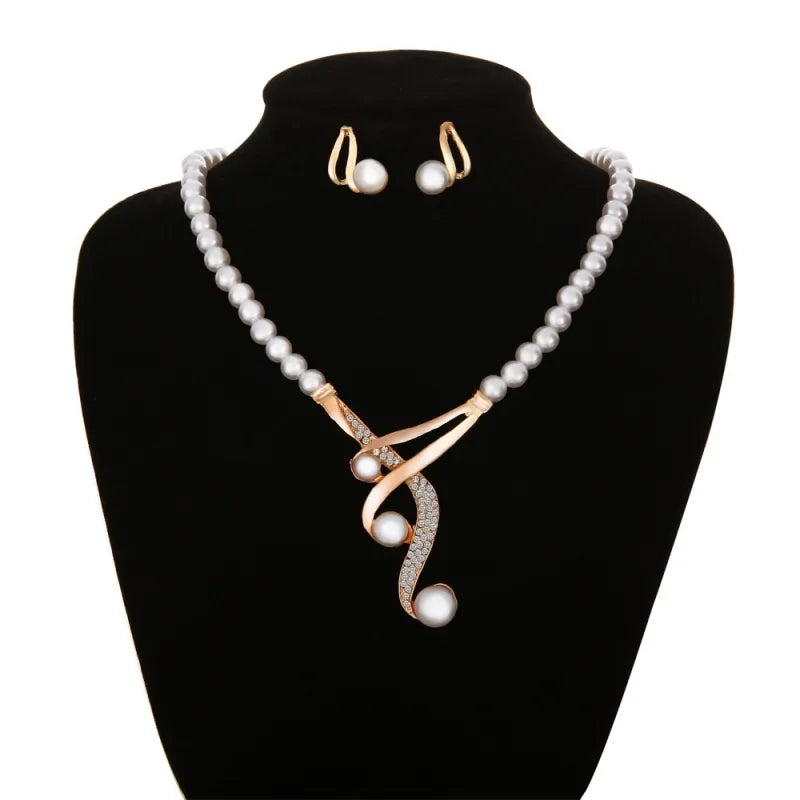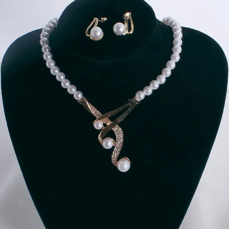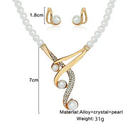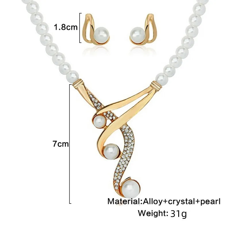 formal round imitation pearl alloy rhinestone plating inlay artificial pearls rhinestones gold plated women's earrings necklace - Gold