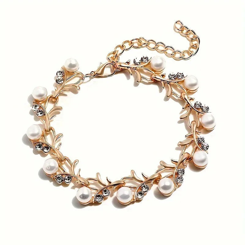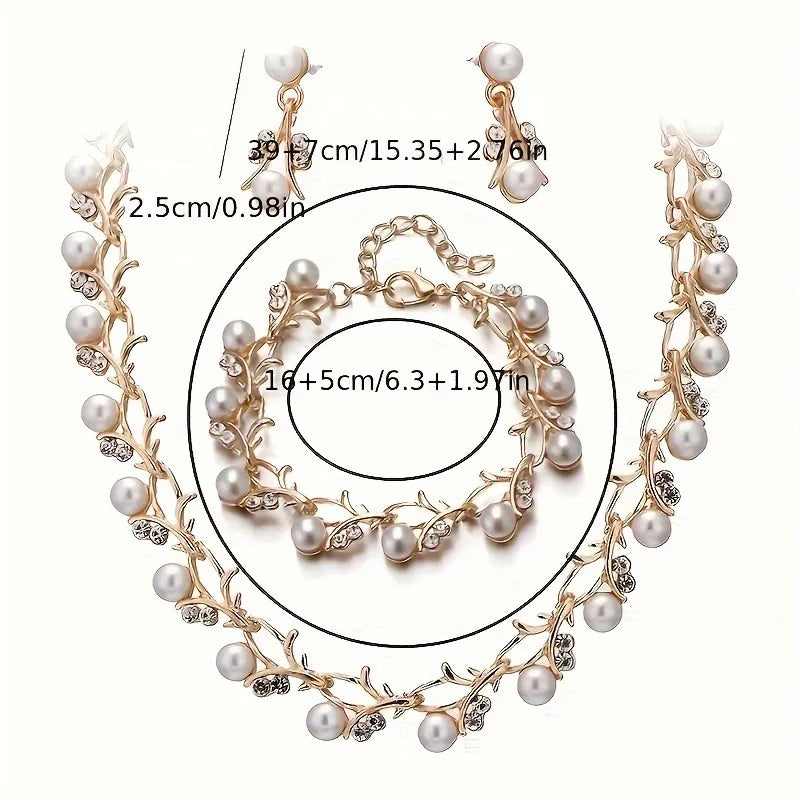 Hot Sale Pearl Necklace and Earrings Suite Bridal Dress Versatile Accessories Fashionable Versatile 3-Piece Set - Gold Beige Pearl