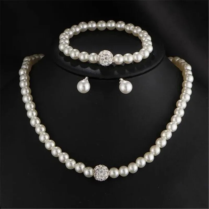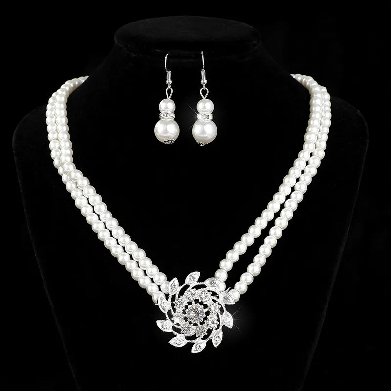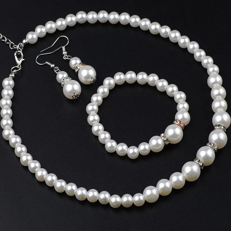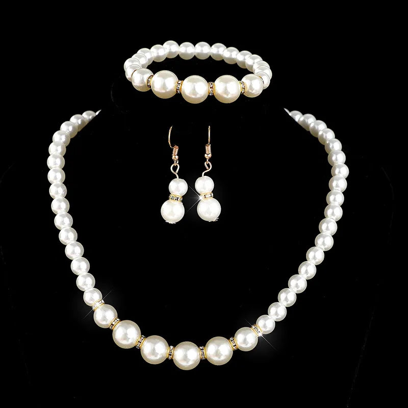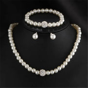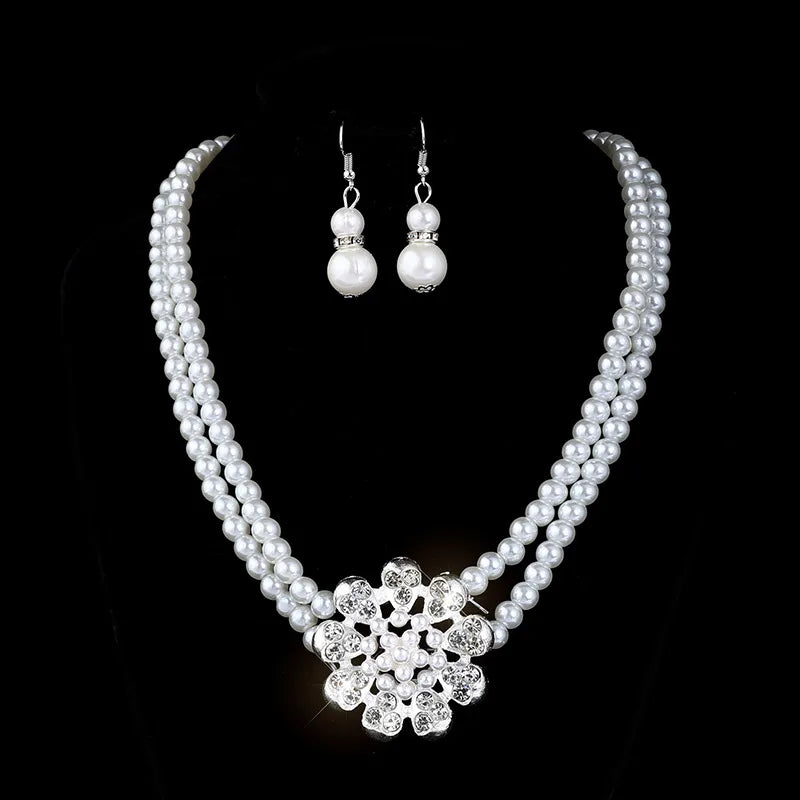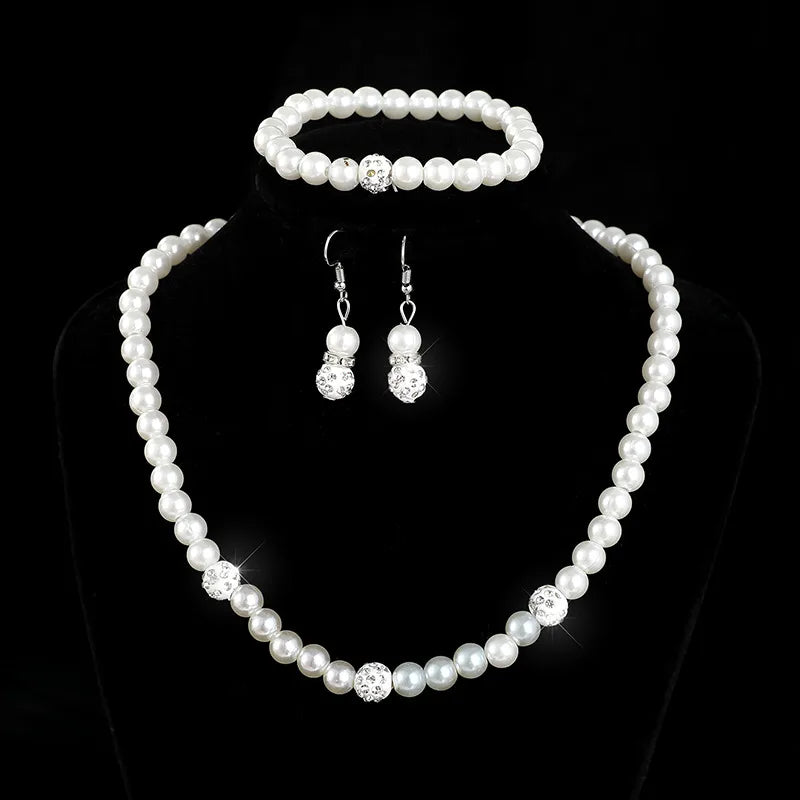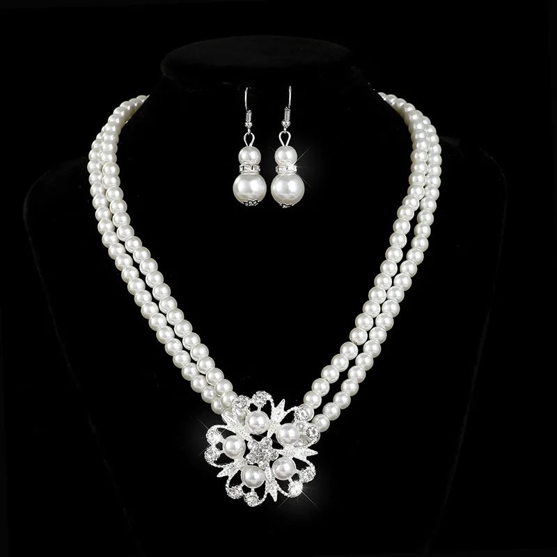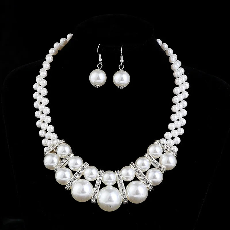 jewelry new bridal sweater chain necklace set diamond artificial pearl necklace earring bracelet set - Set 1