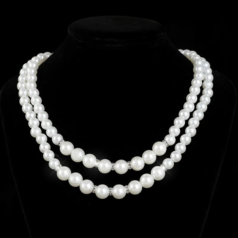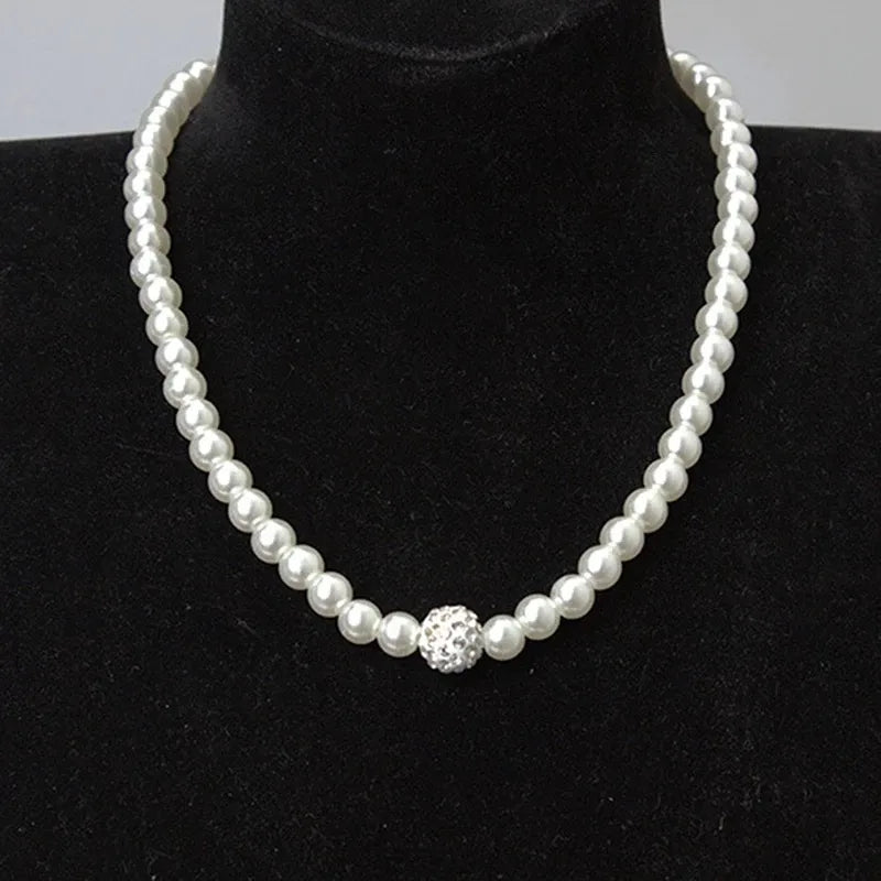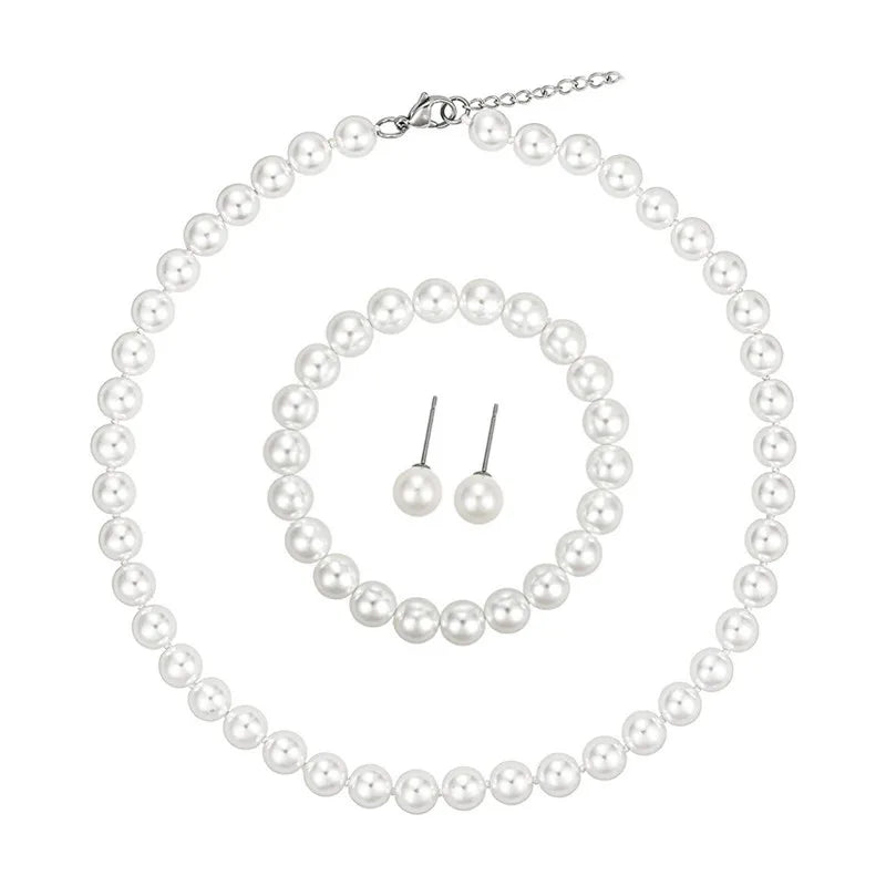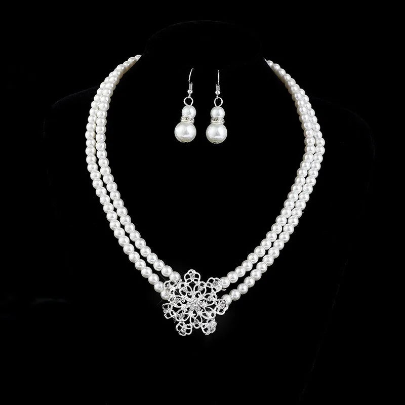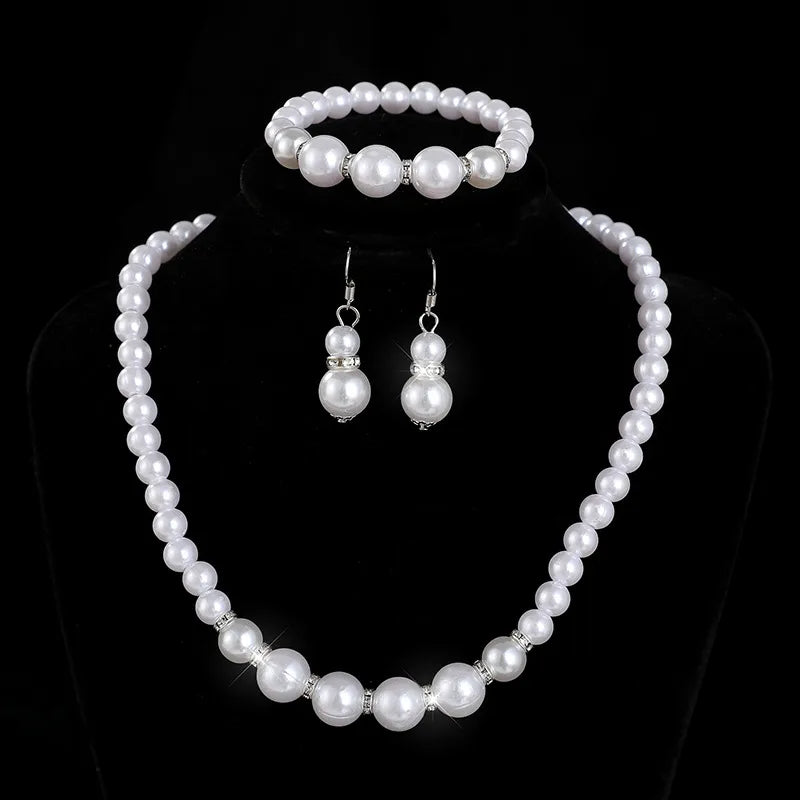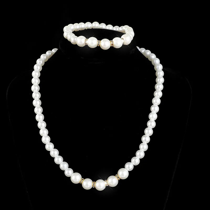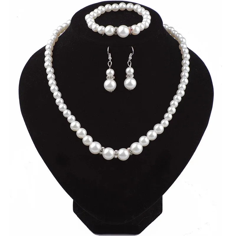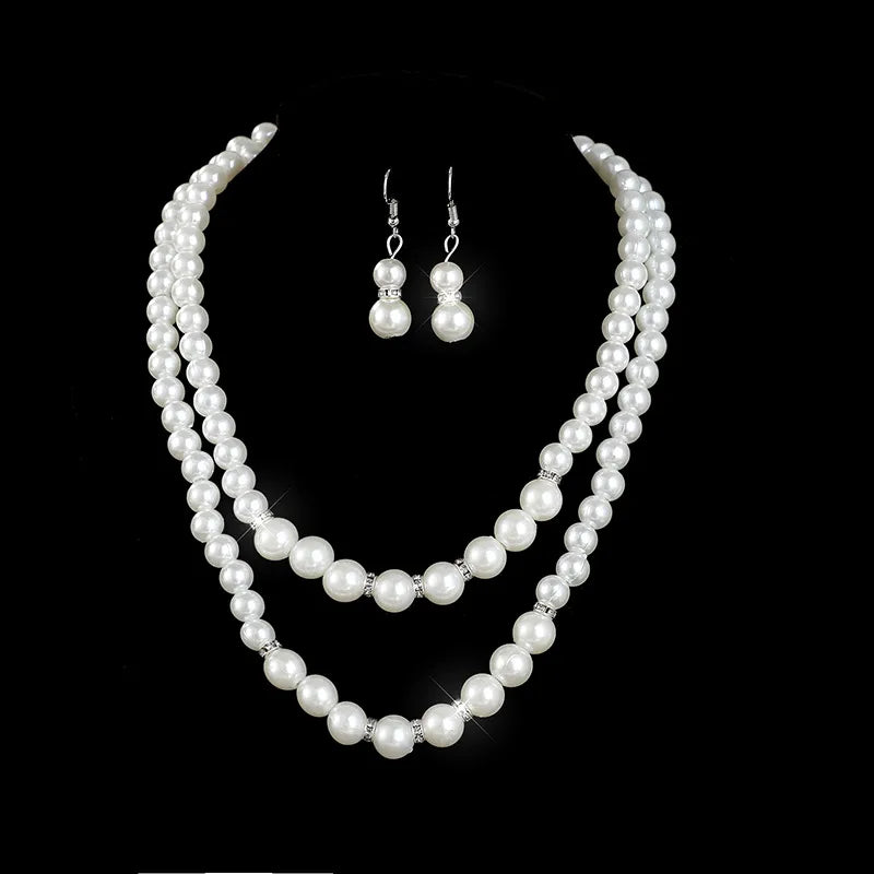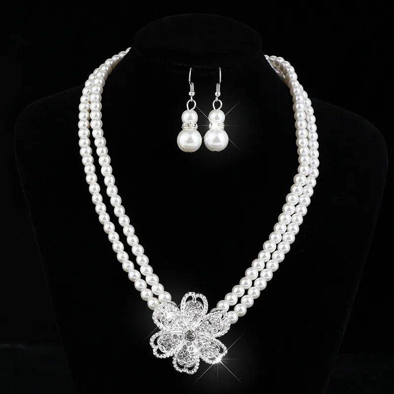 jewelry new bridal sweater chain necklace set diamond artificial pearl necklace earring bracelet set - Set 1