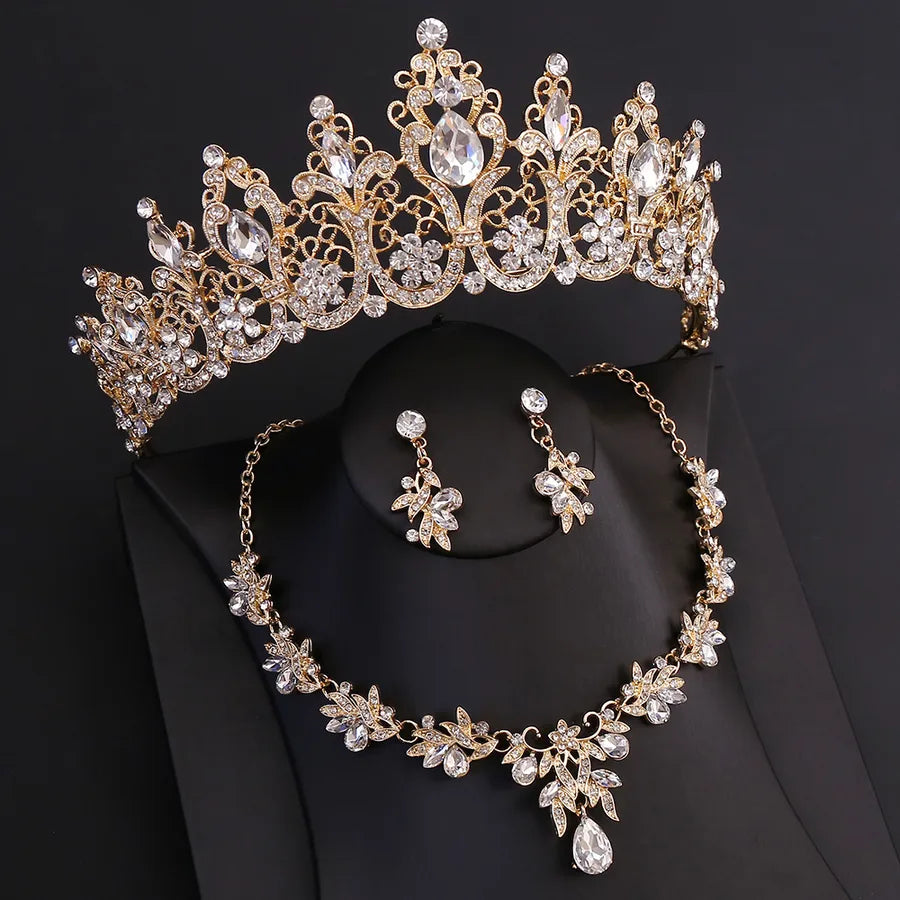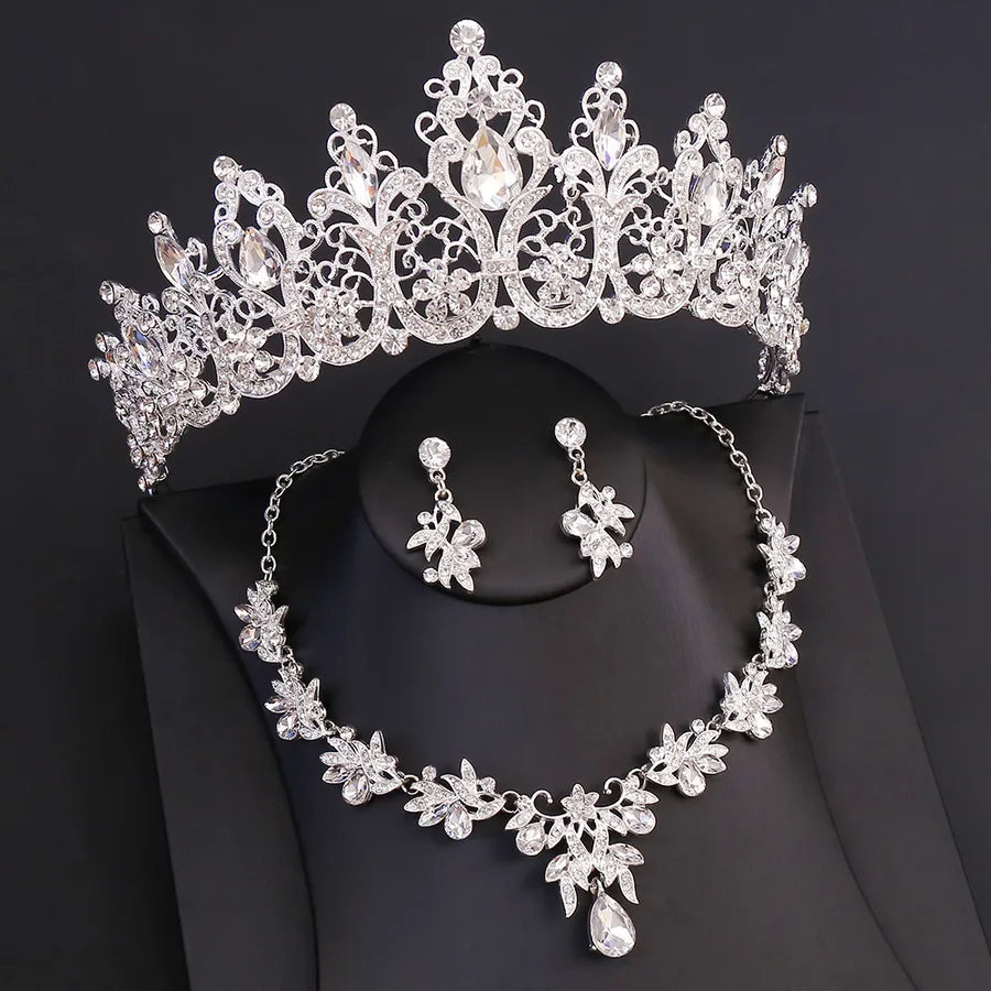 Queen Shiny Solid Color Artificial Crystal Women's Jewelry Set - H1414 Silver White Diamond C1024 Auricular Needle