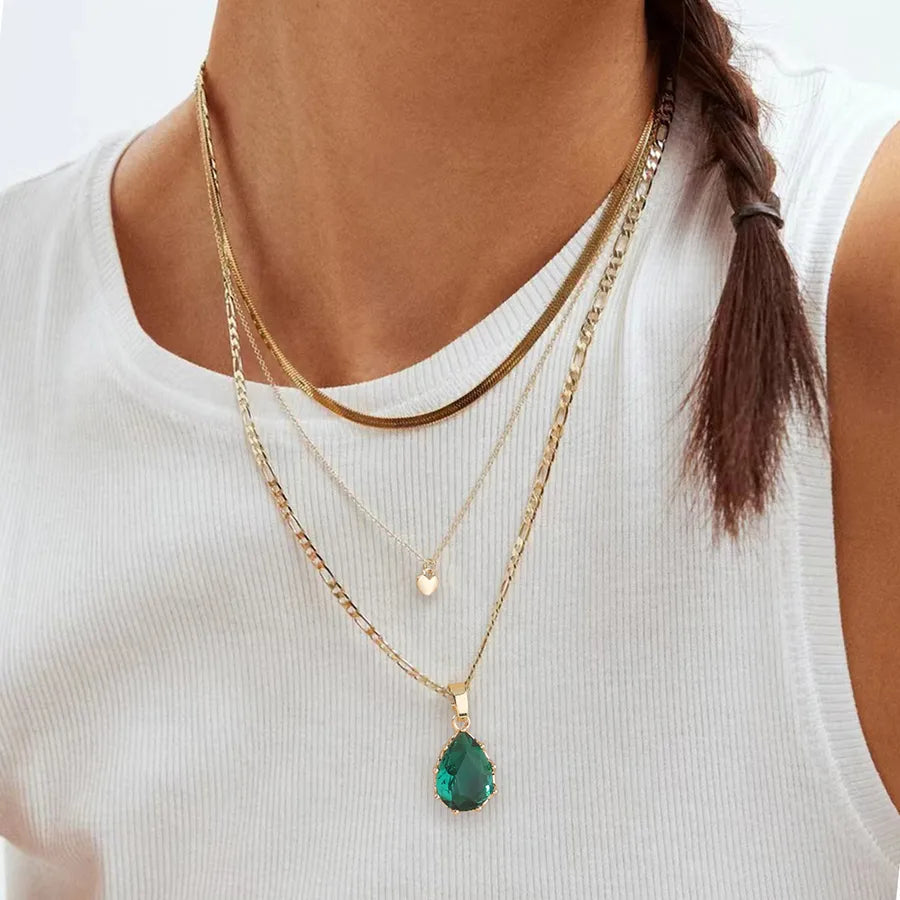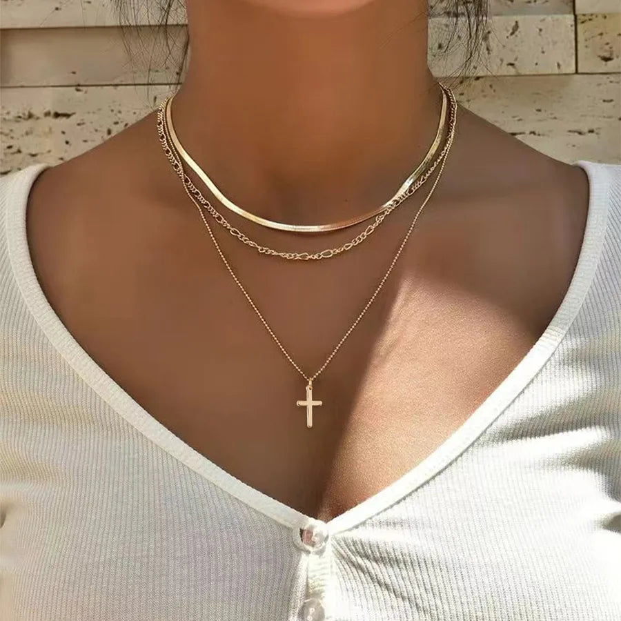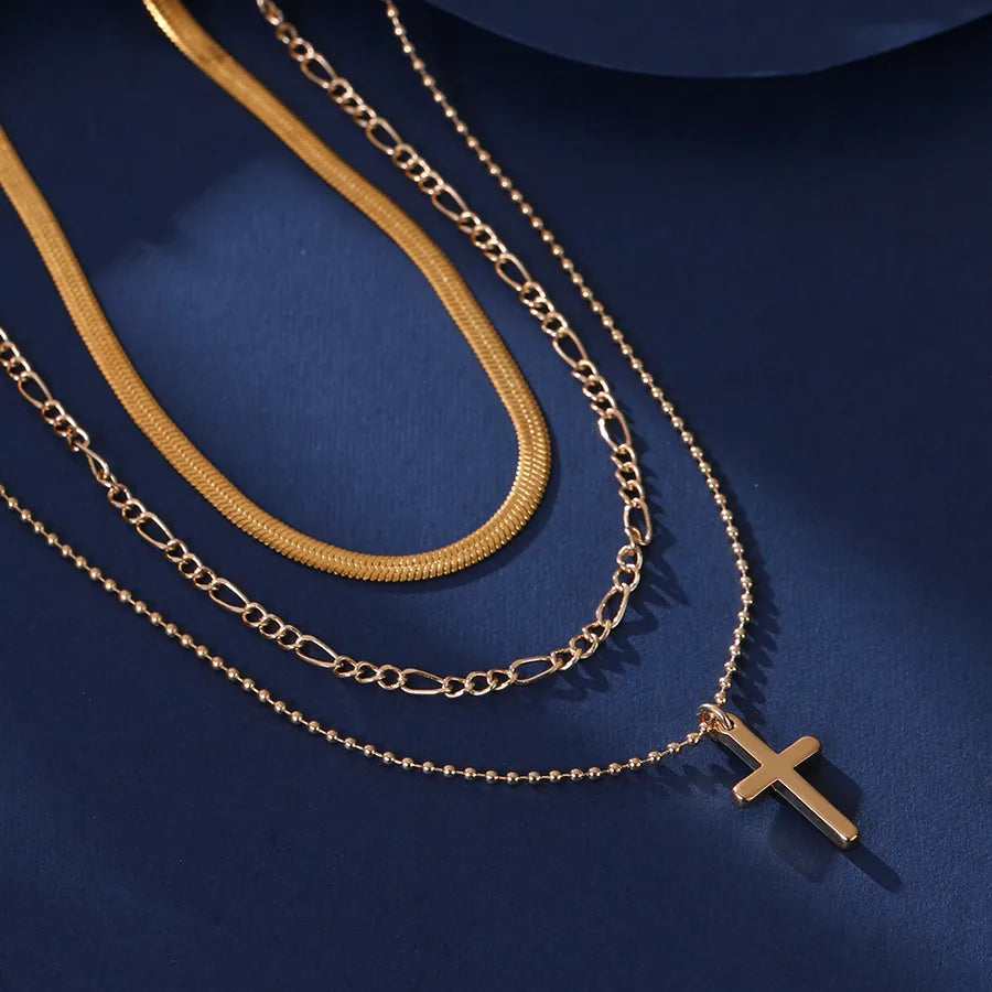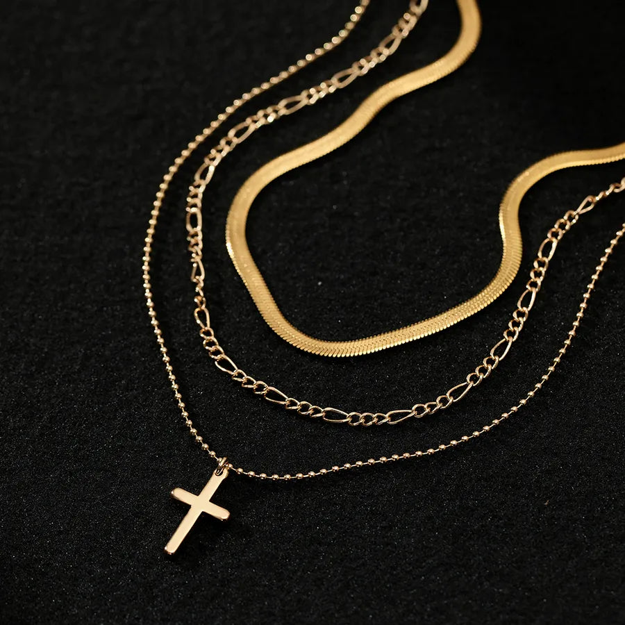 201 Stainless Steel Copper Cross Necklace - Gold / Water Drop
