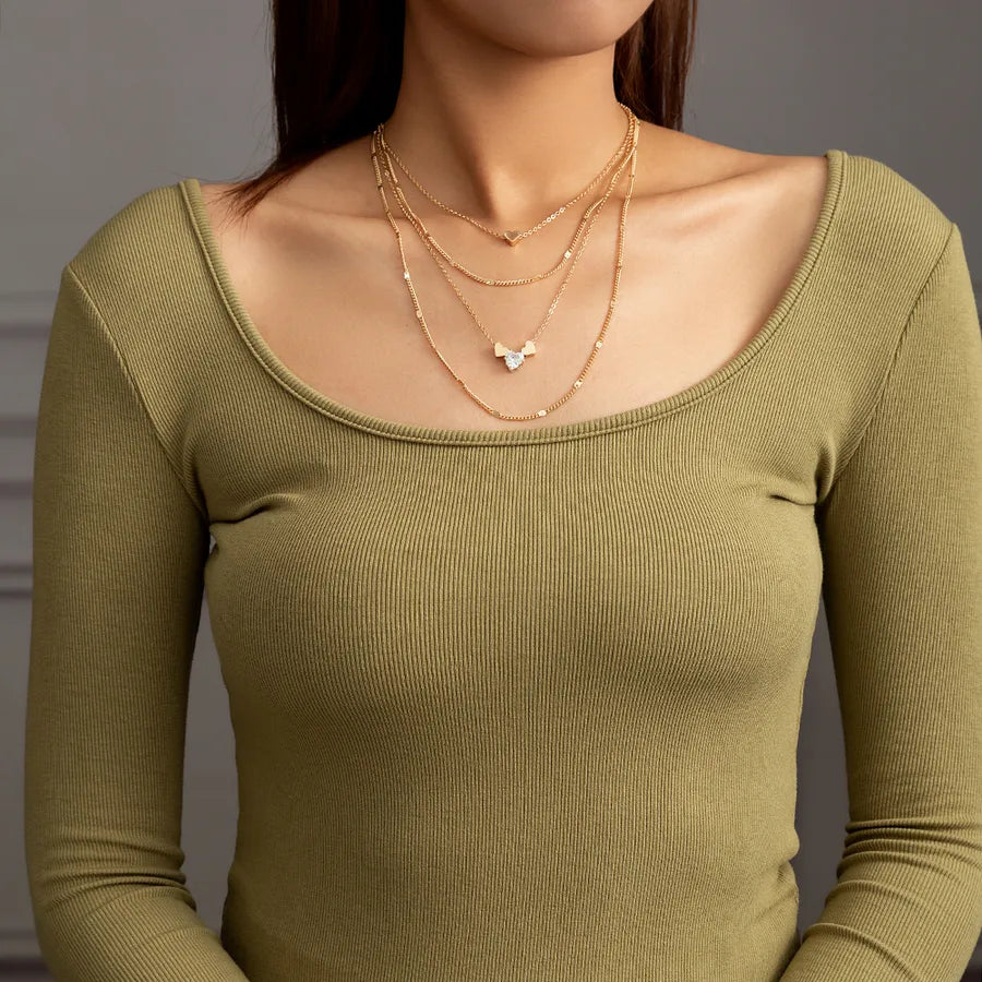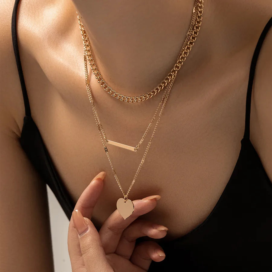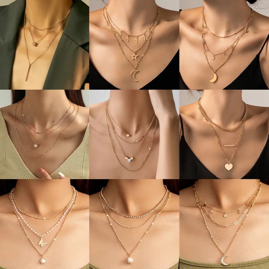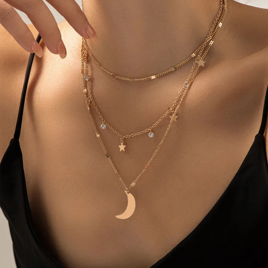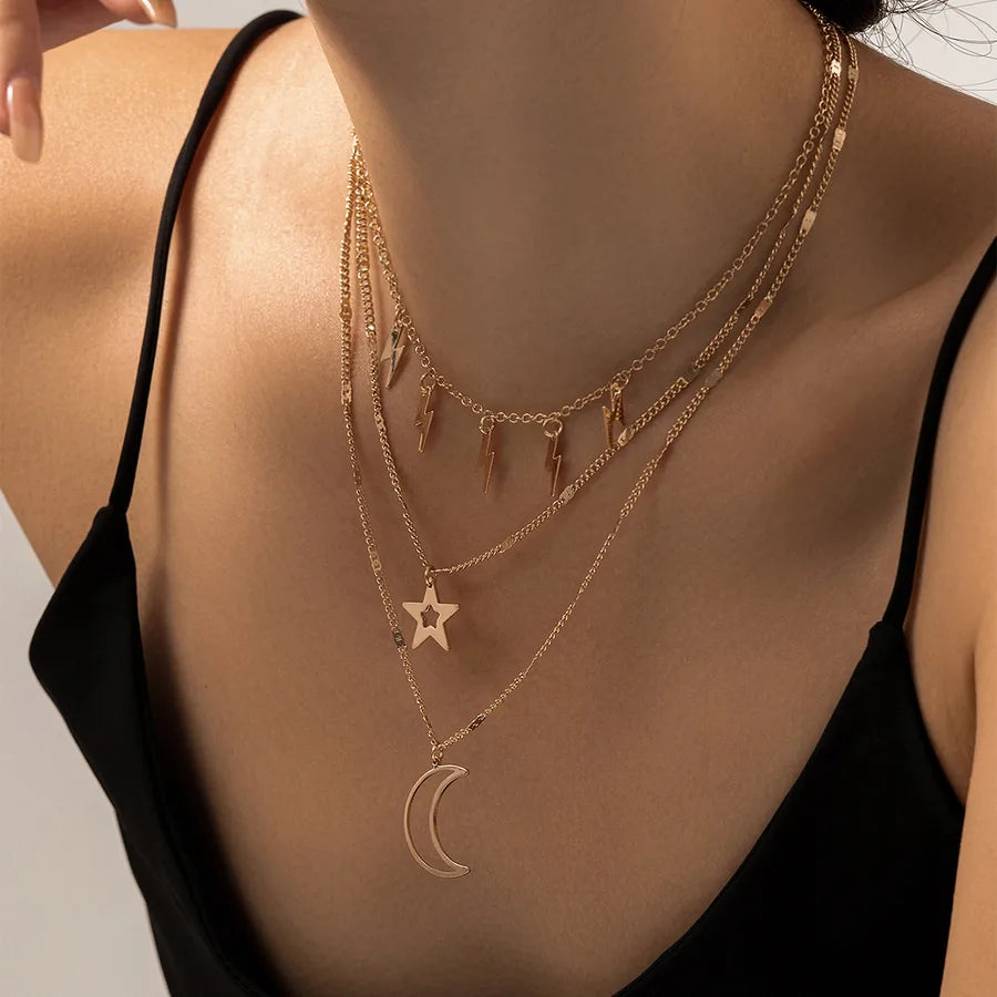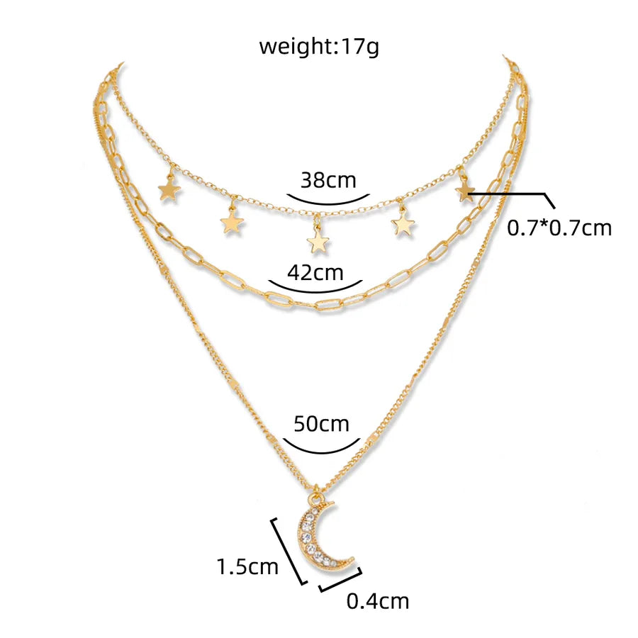 Elegant Gold Plated Copper Necklace Set For Women Star Moon Hollow Out Design Mixed Matching Three Piece Jewelry Combo - Average Size / Gold / Nz1222