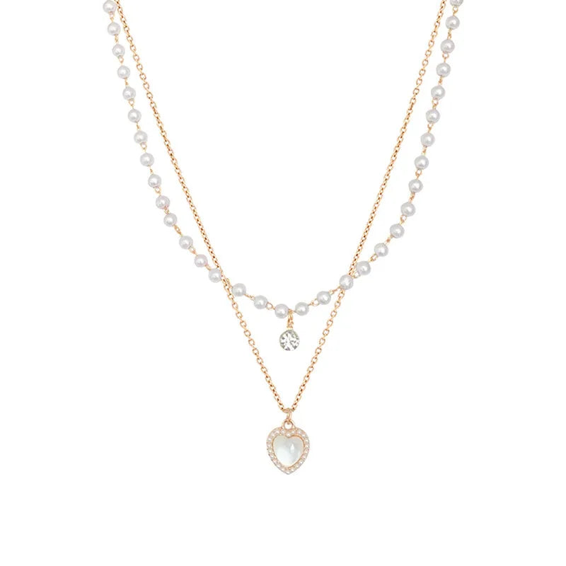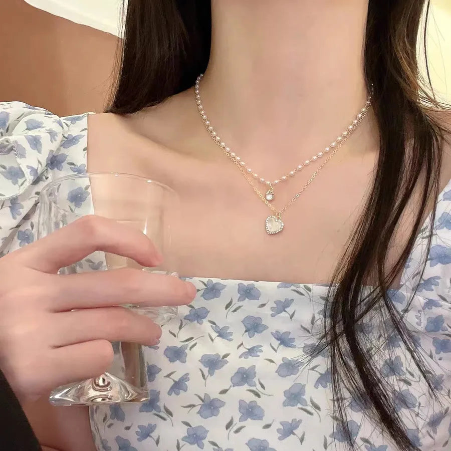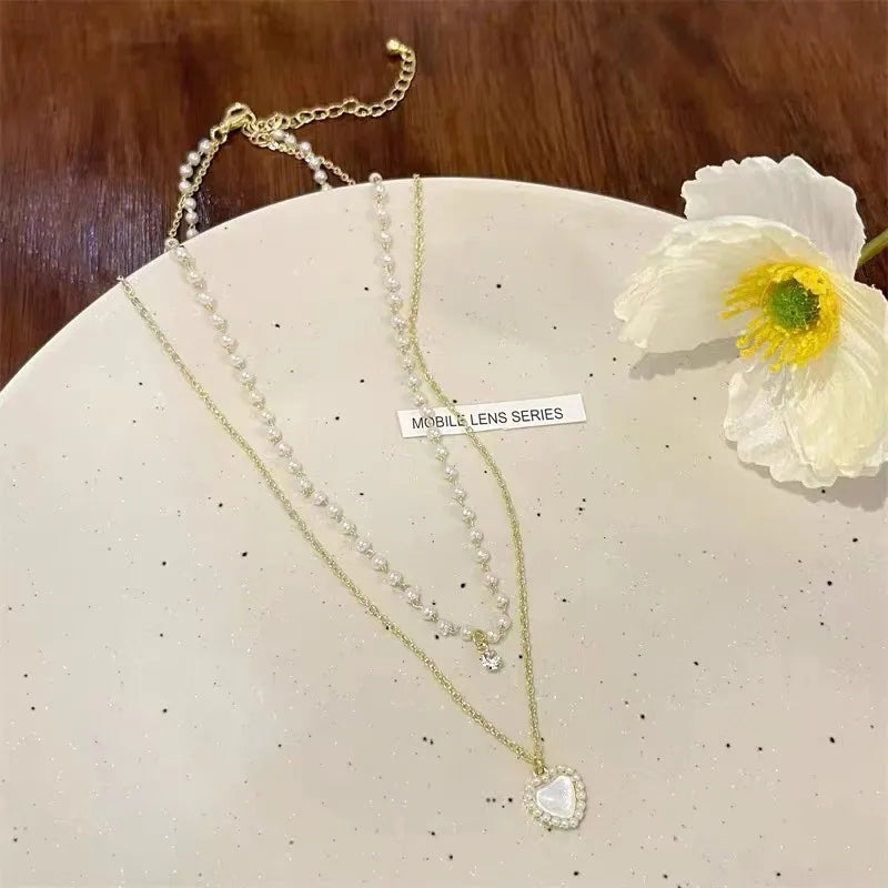 elegant sweet heart shape alloy plating inlay artificial pearls zircon women's layered necklaces - Love Pearl Necklace