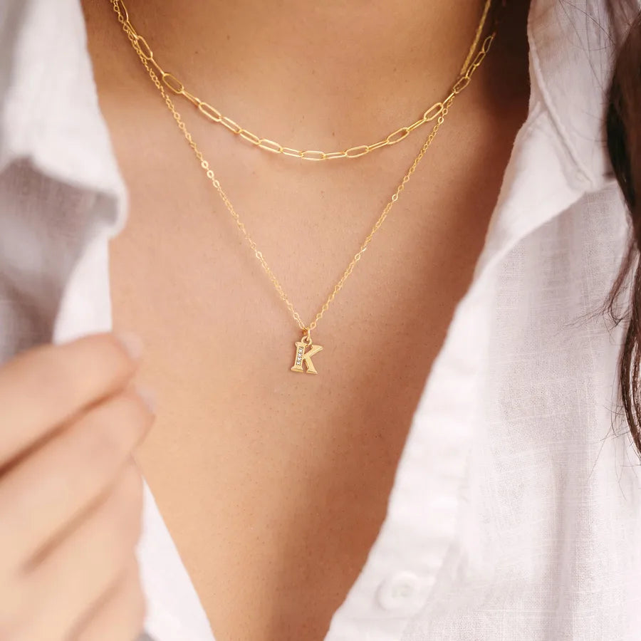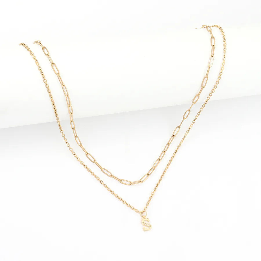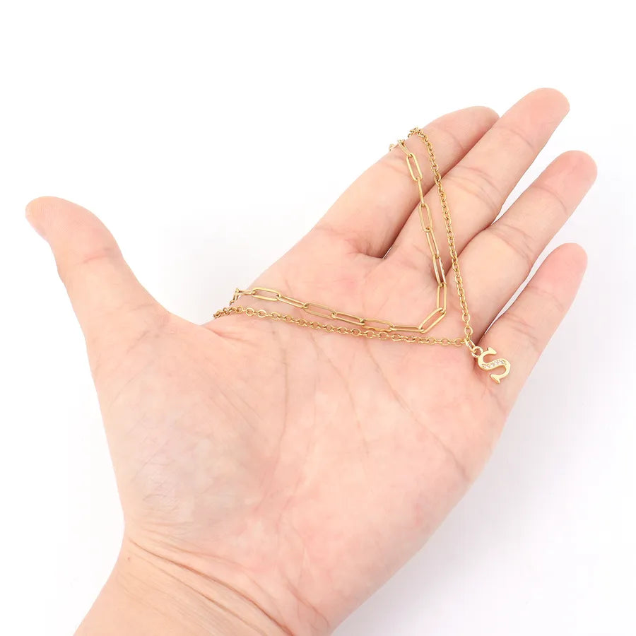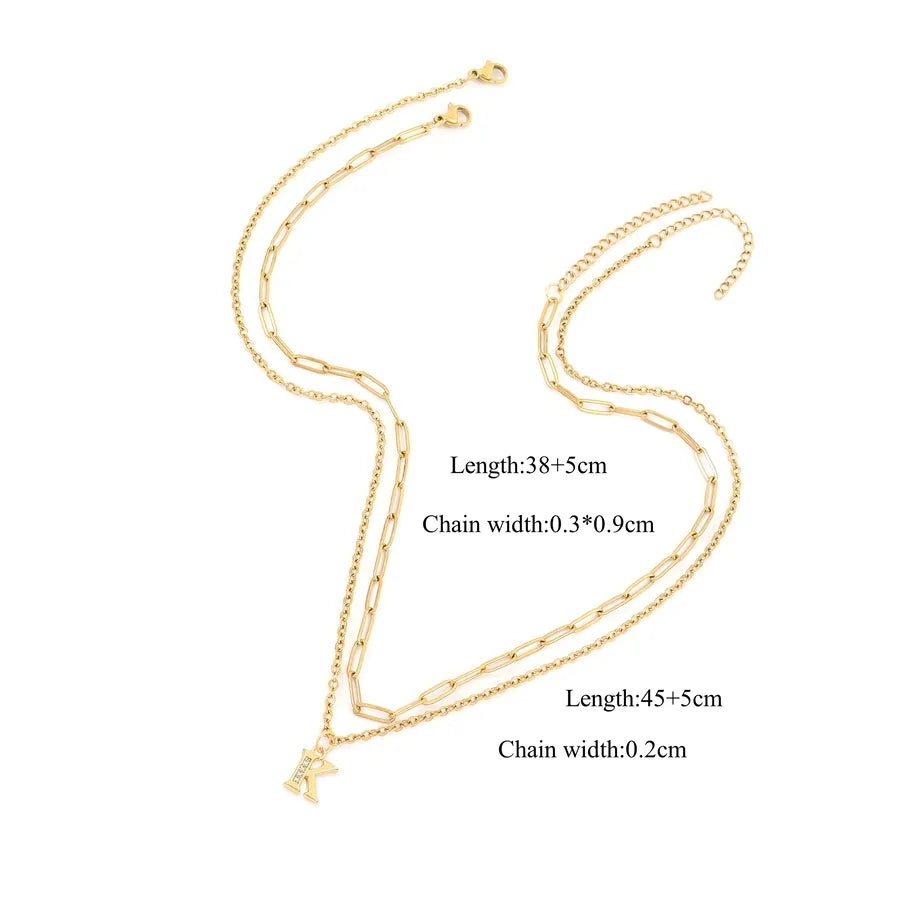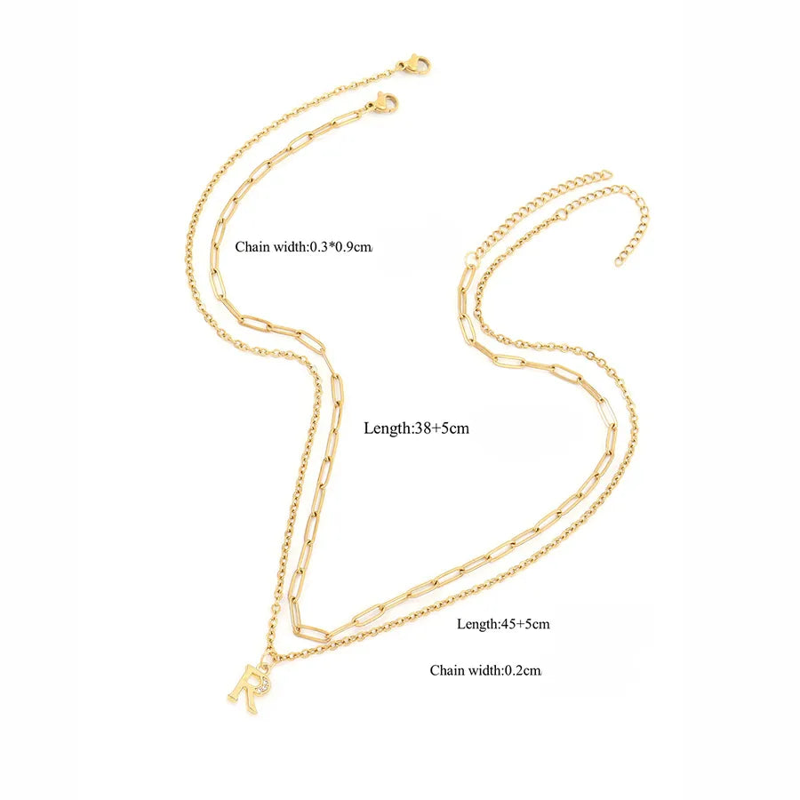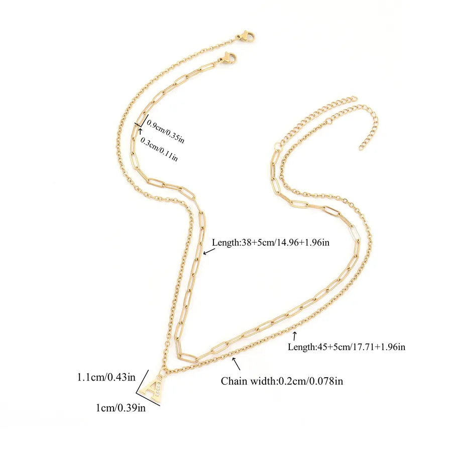Romantic Minimalist Initial Pendant Necklace Set Gold Stainless Steel Micro-Set Zirconia Women's Multi-Layer Lobster Clasp Chain - Gold / A