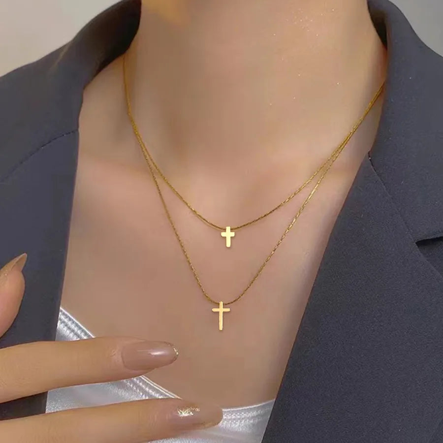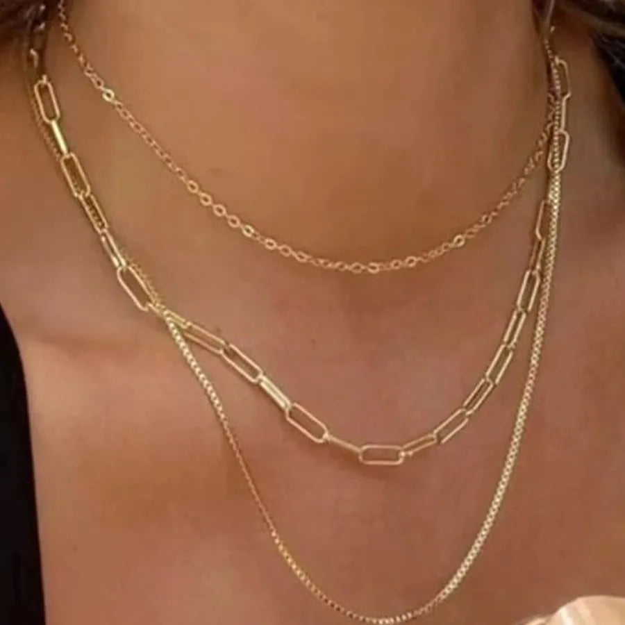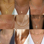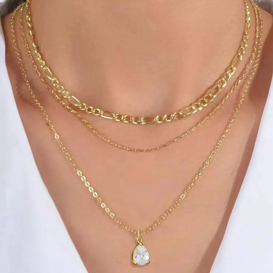 Wholesale Jewelry Elegant Cute Sexy Cross Tree Water Droplets Copper Paperclip Chain snake chain Layered Necklaces