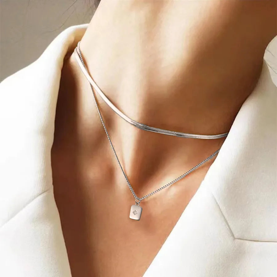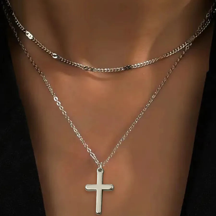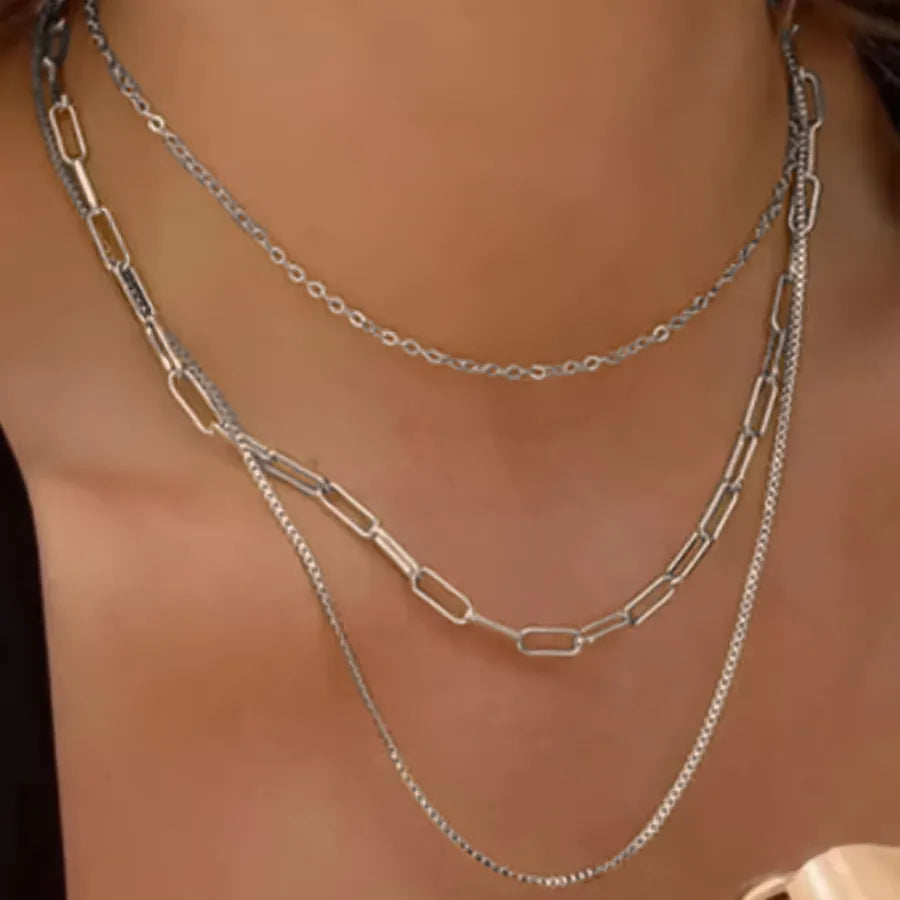 Wholesale Jewelry Elegant Cute Sexy Cross Tree Water Droplets Copper Paperclip Chain snake chain Layered Necklaces - Average Size / Silver / NZ1696-B