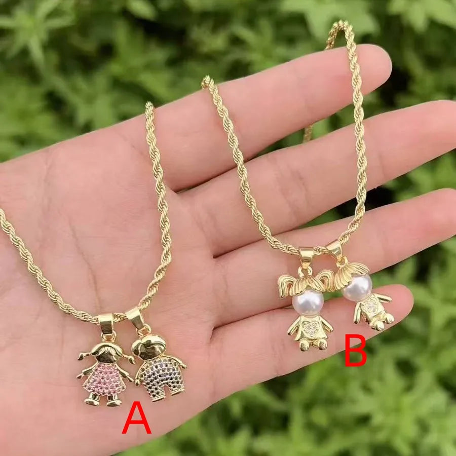 Color Retention Electroplated Micro Paved Zircon Necklace For Boys And Girls Polished Engraved 18K Gold Plated Copper Pendant - A / 1 Strand/Package