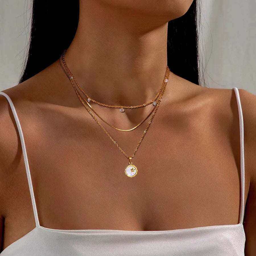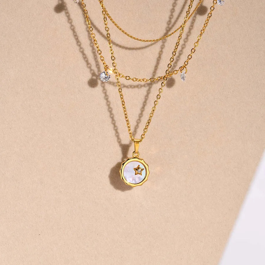 Wholesale Jewelry IG Style Elegant Star 304 Stainless Steel 18K Gold Plated Layered Plating Stainless Steel Necklaces