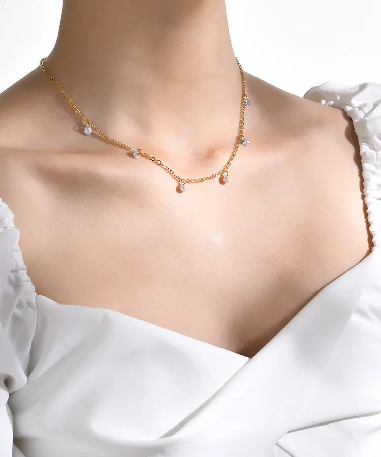 Wholesale Jewelry IG Style Elegant Star 304 Stainless Steel 18K Gold Plated Layered Plating Stainless Steel Necklaces - S-Shaped Clavicle Chain
