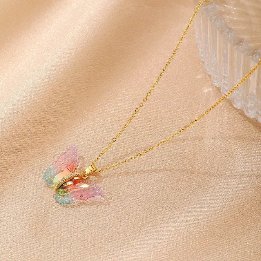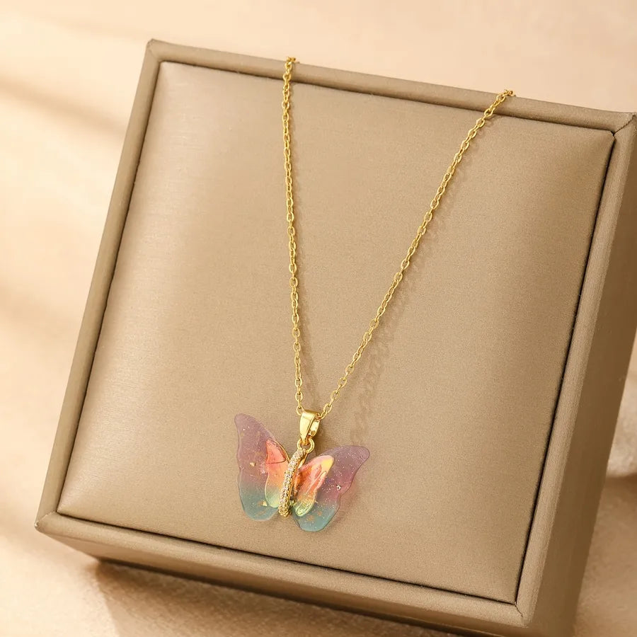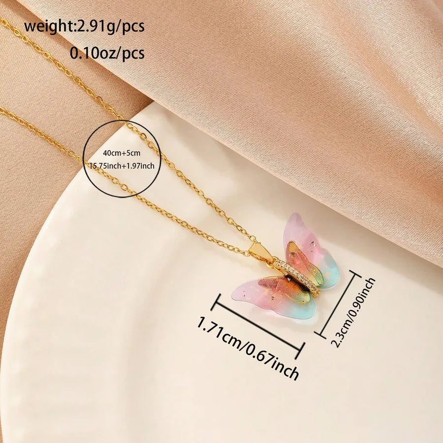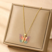 Wholesale Jewelry Vacation Classic Style Butterfly 316 Stainless Steel cable chain Pendant Necklace - Colorful