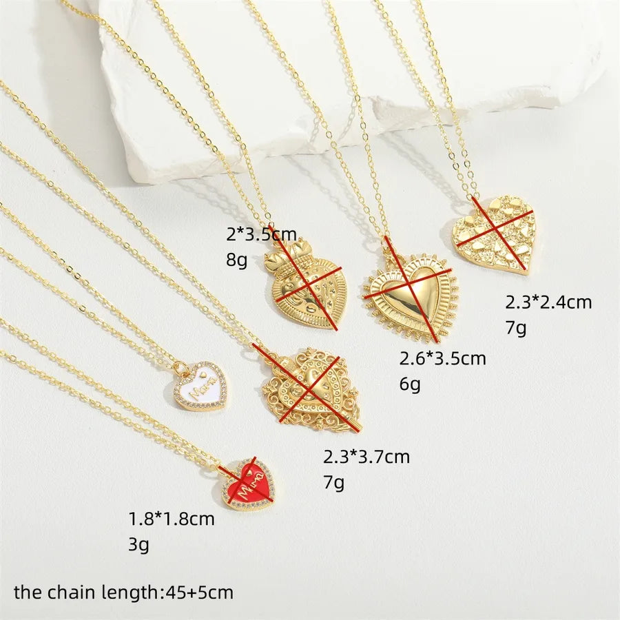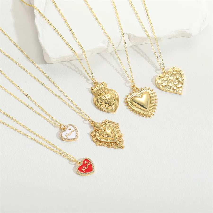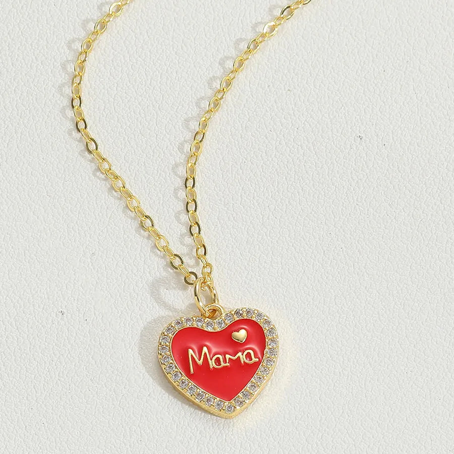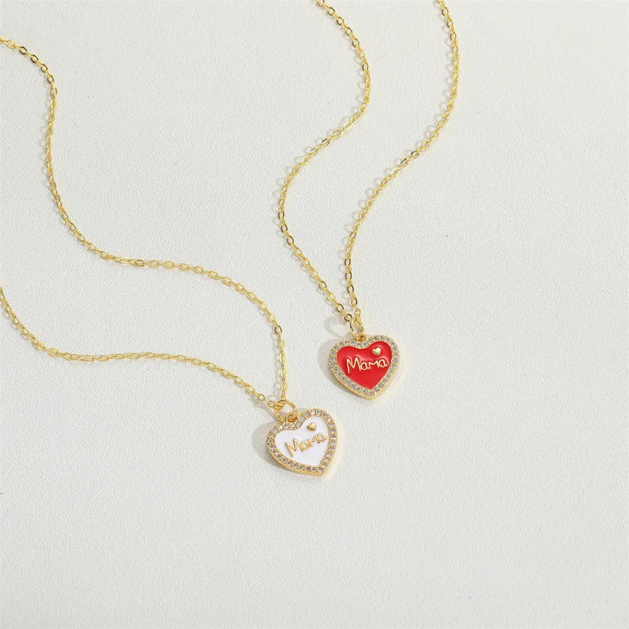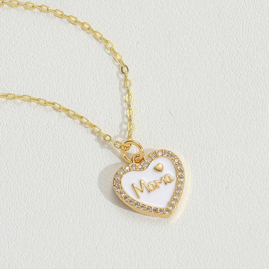 Wholesale Vintage Style Simple Style Commute Heart Shape Copper Enamel Inlay 14K Gold Plated Zircon Pendant Necklace - Mama (White)