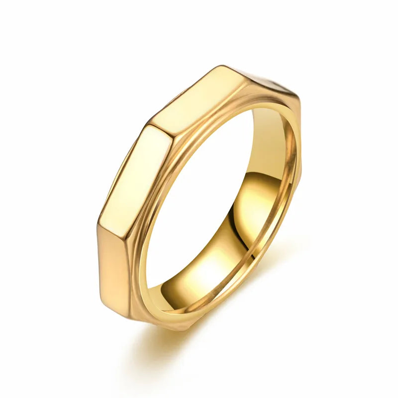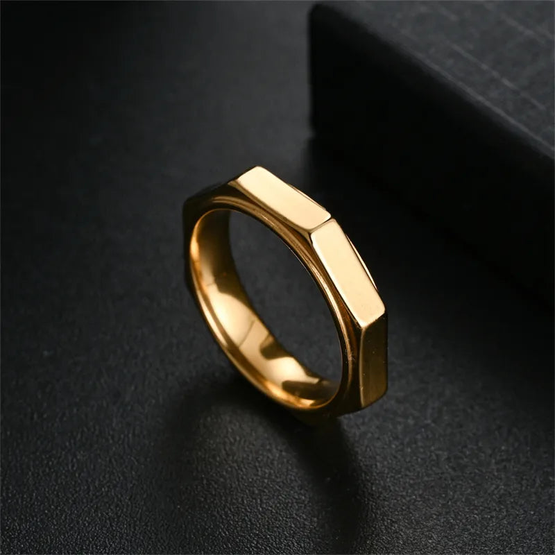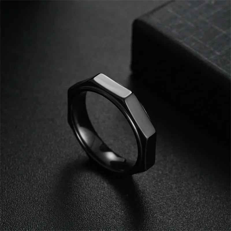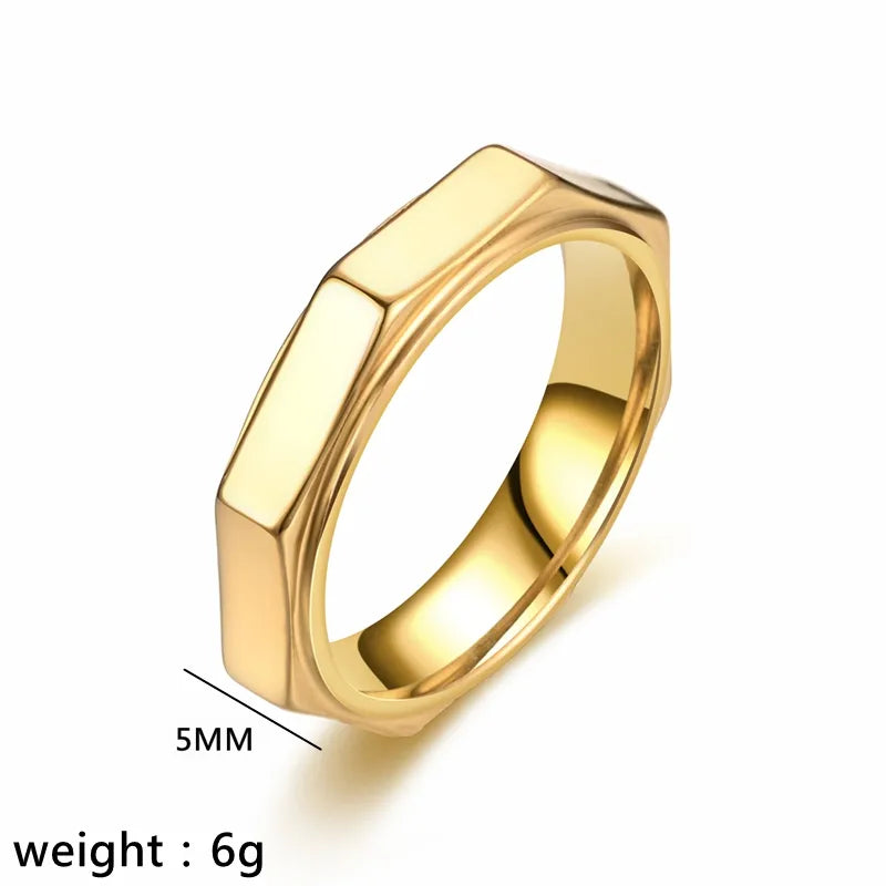 Basic Formal Classic Style Gear 201 Stainless Steel 18K Gold Plated Unisex Rings Men Band Rings - 5 / Black