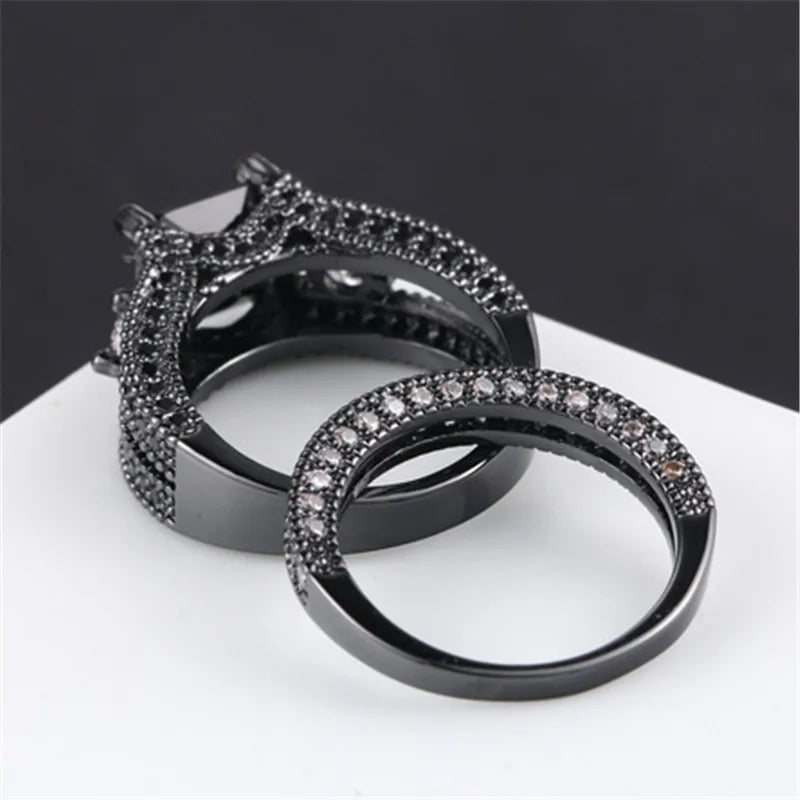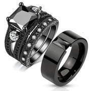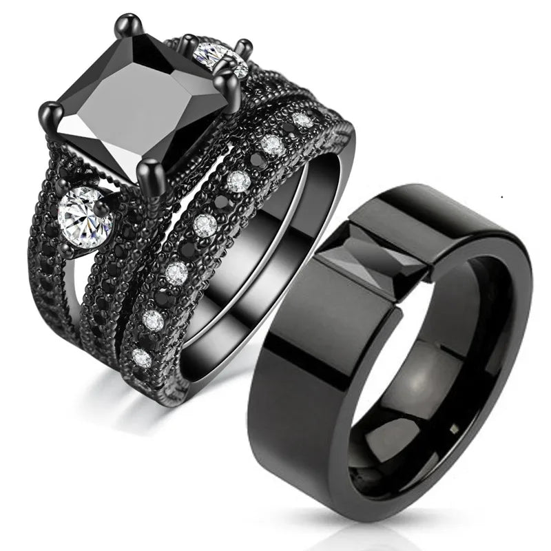 Black Nano Zirconium Alloy Ring Gold Plated Couple Set Men's Women's Combination Ring Simple Geometric Pattern Jewelry - 5 / Men's