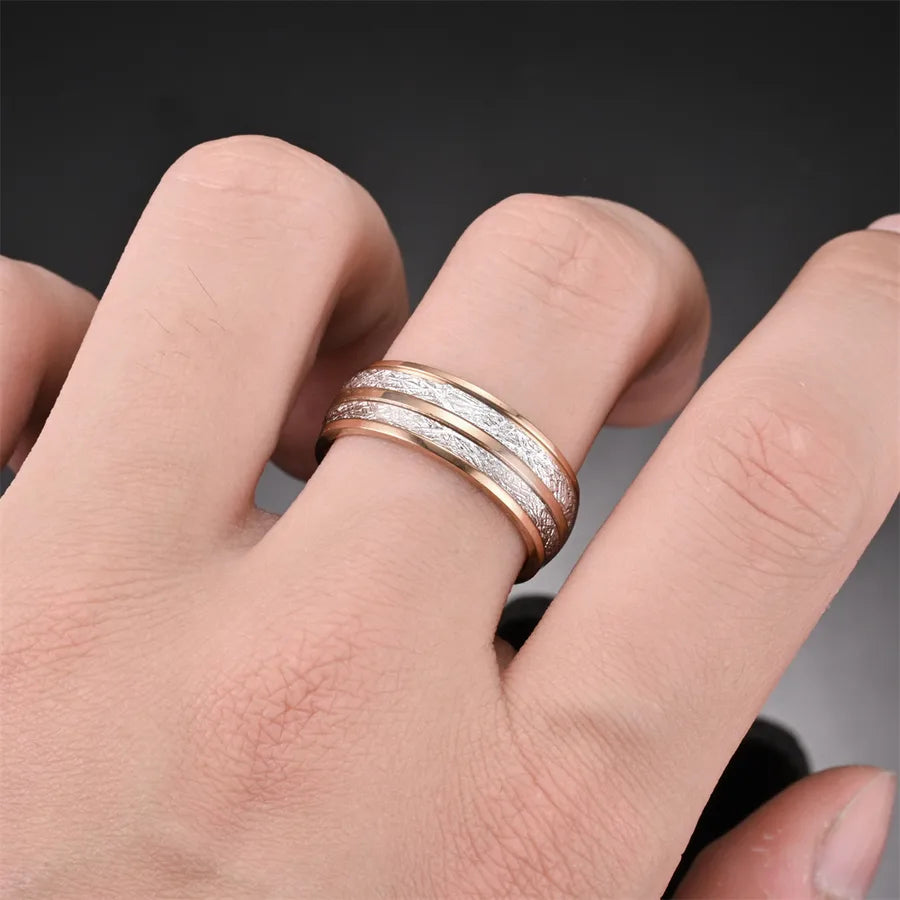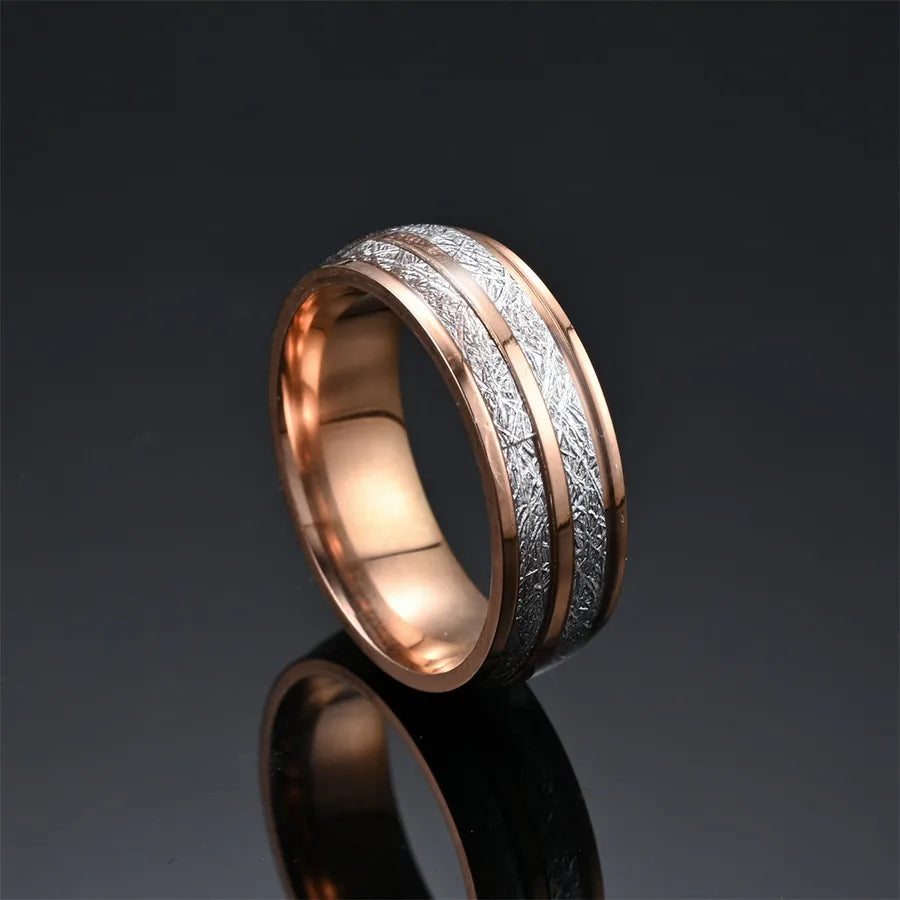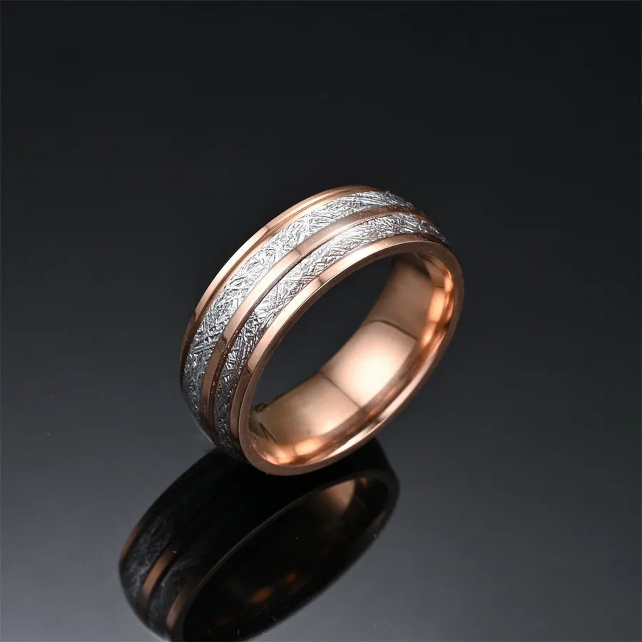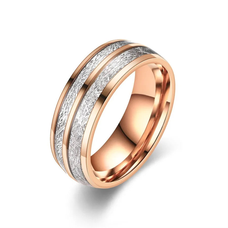 Engagement Couple Rings Stainless Steel Inlaid Double Groove Silk Thread Simple Rose Gold Wedding Bands Unisex Original Design - 7 / Rose Gold