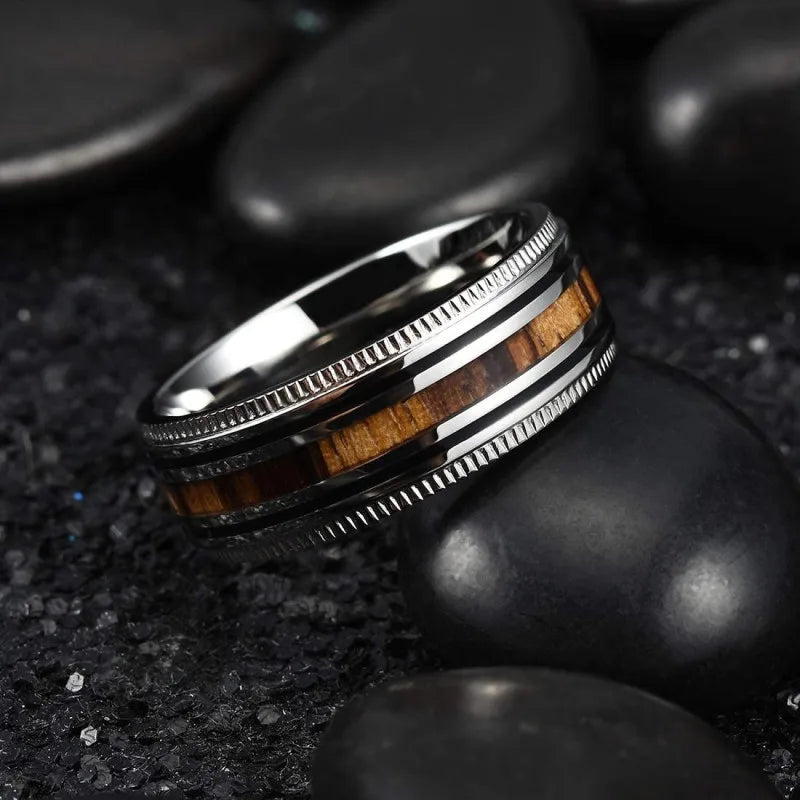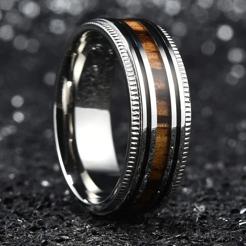 Gabe Jewelry Silver Wooden Texture Stainless Steel Ring Popular Sales Drip Oil Dark Style Ring Fashionable Accessory - 6 / As Picture