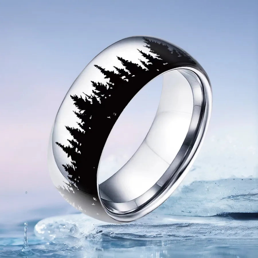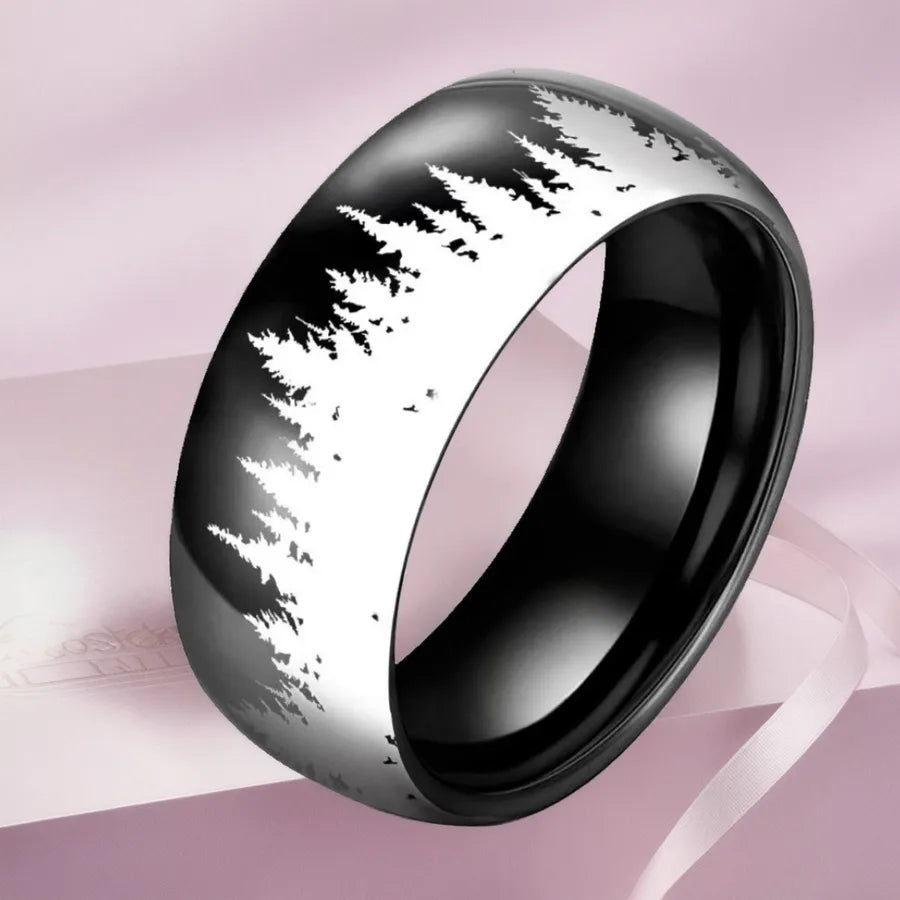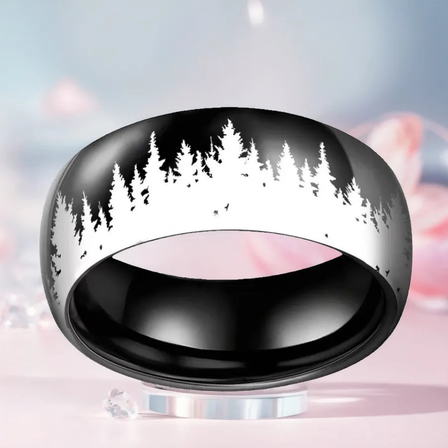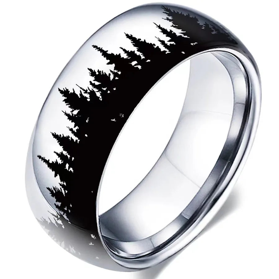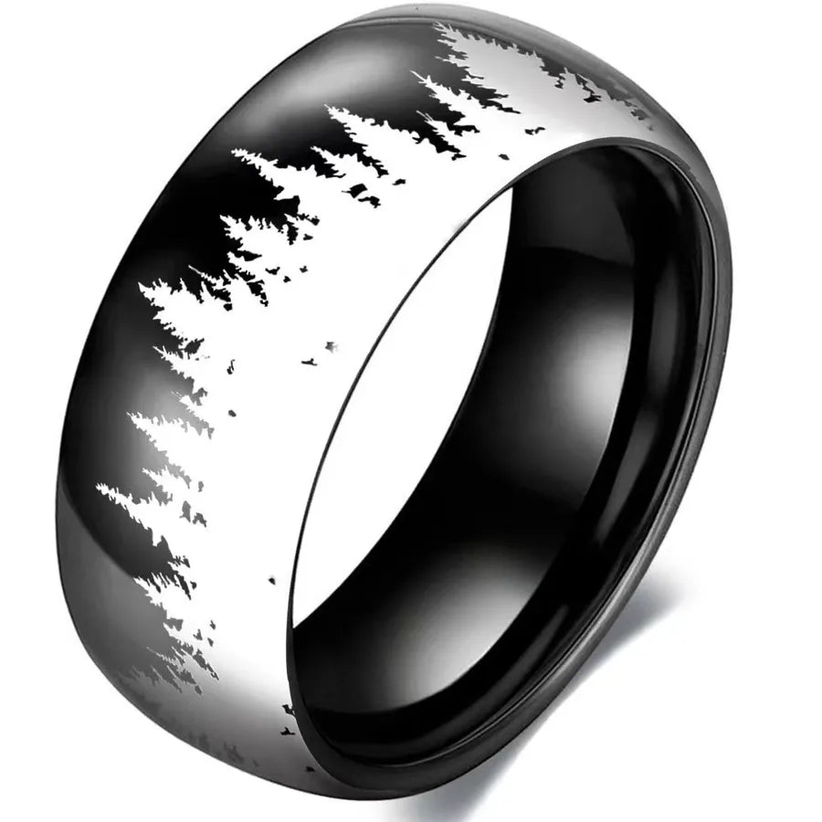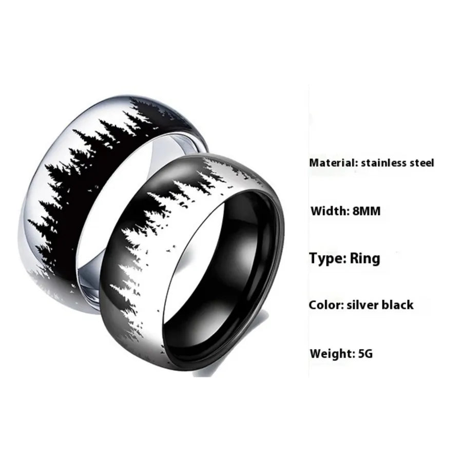 jewelry outdoor forest ring 8mm stainless steel ring titanium steel jewelry