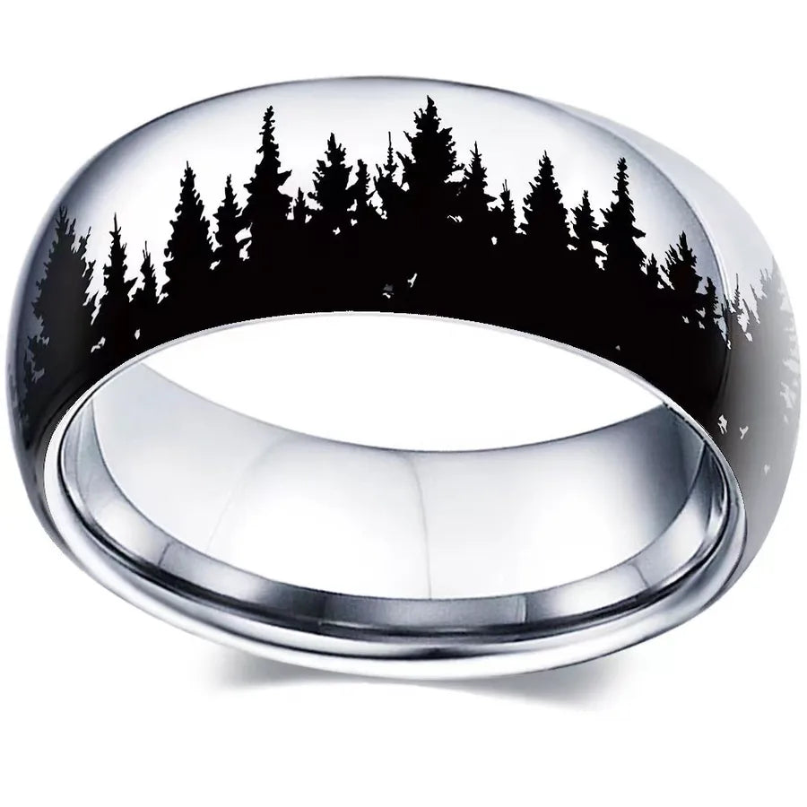 jewelry outdoor forest ring 8mm stainless steel ring titanium steel jewelry - 6. / Silver