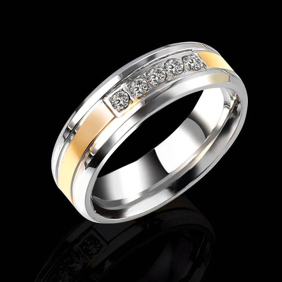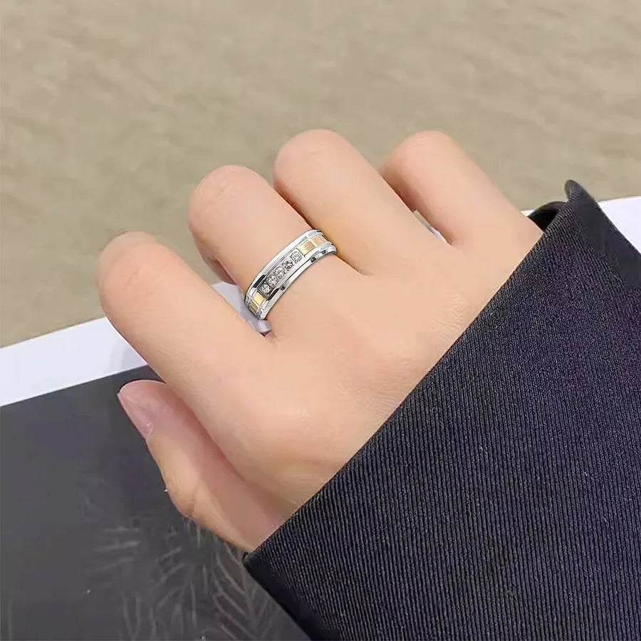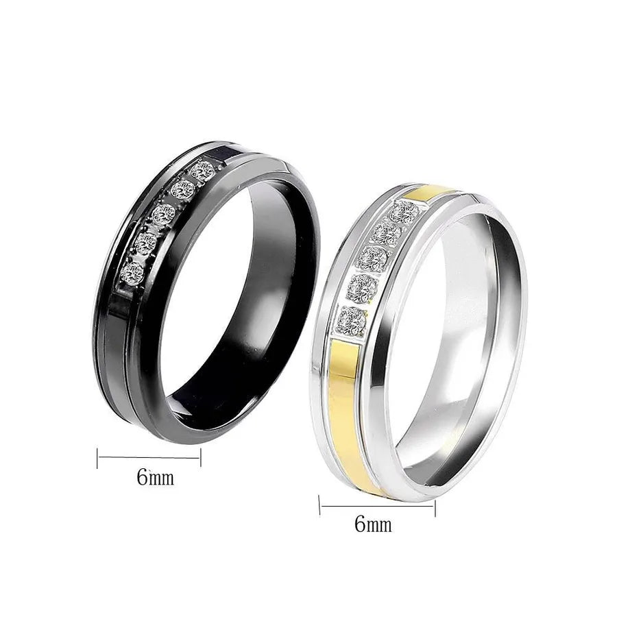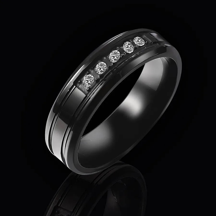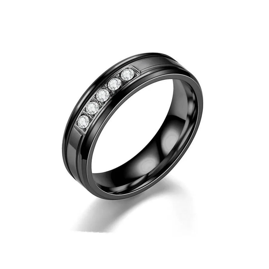 Luxurious Simple Style Round Round Dots 201 Stainless Steel Polishing Plating Zircon Men's Rings Men Band Rings - 6 / Black
