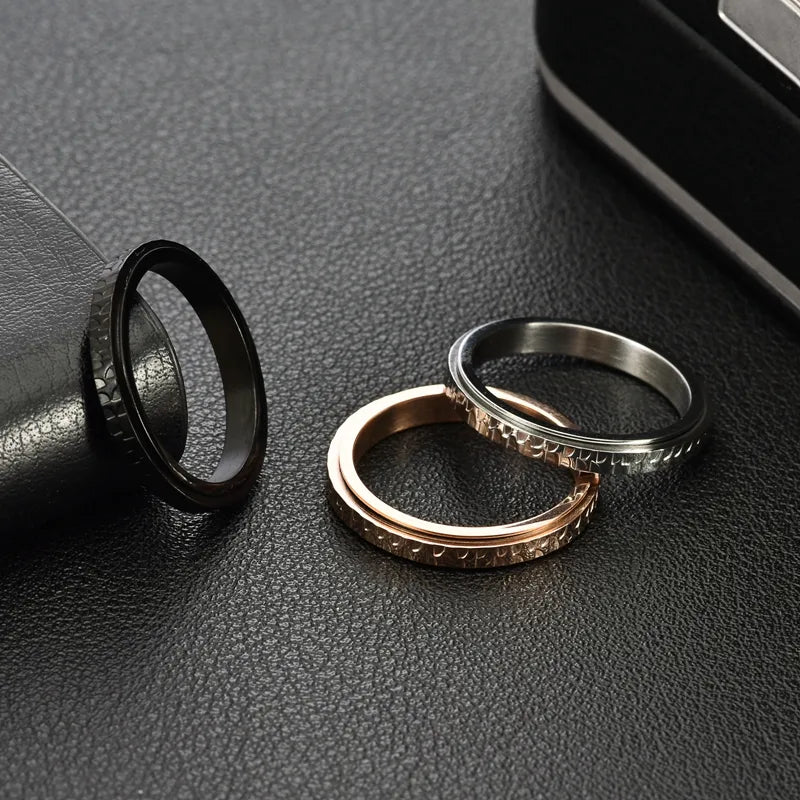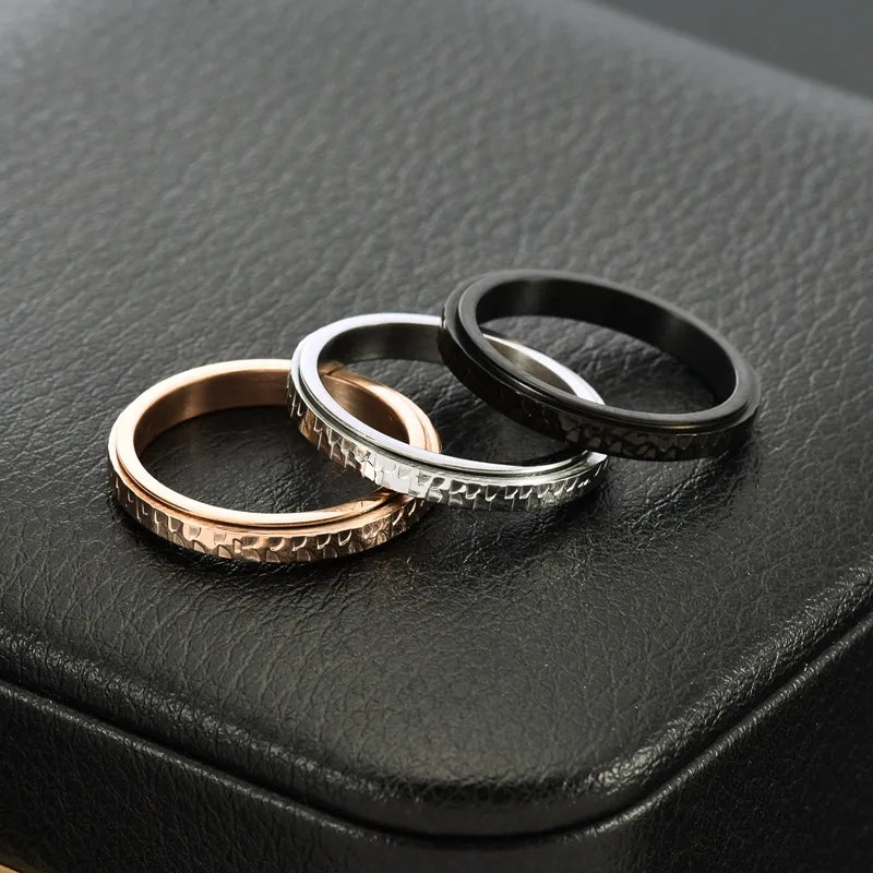 Modern Style Shiny Ice Cube Coconut 304 Stainless Steel Beaded 18K Gold Plated Men's Rings Men Band Rings - Rose Gold / 5