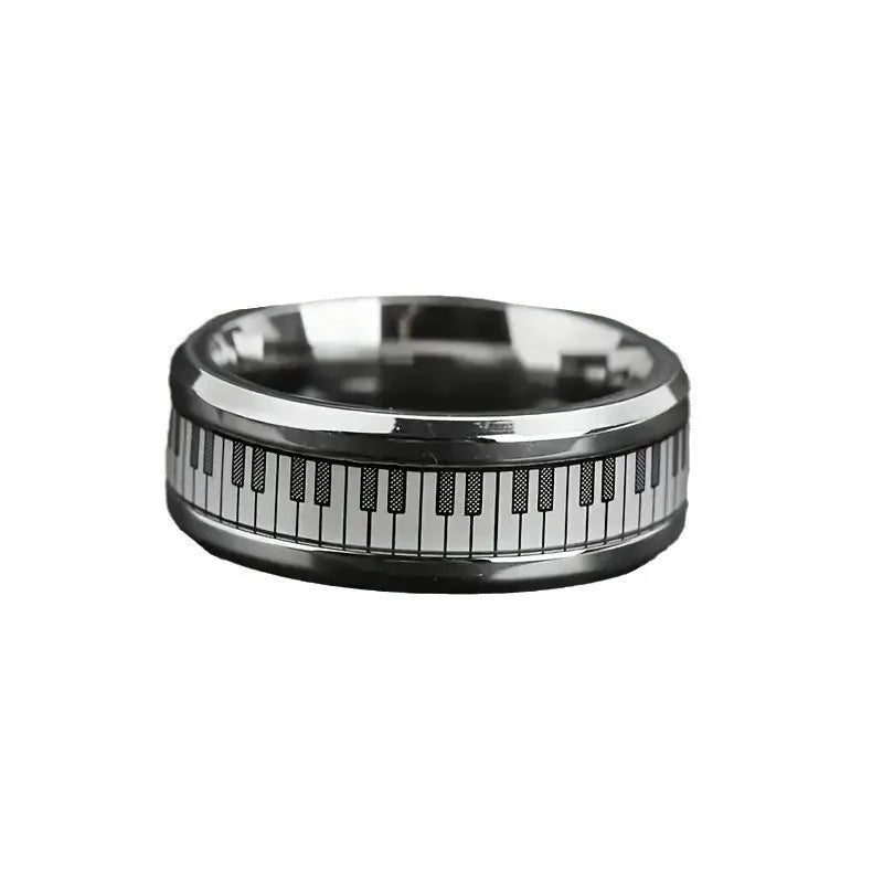 Retro Classic Style Pano Keys Titanium Steel Men's Rings Men Band Rings - 6 / Silver 8mm