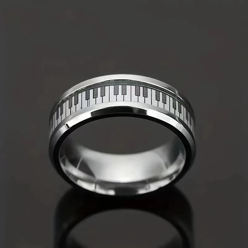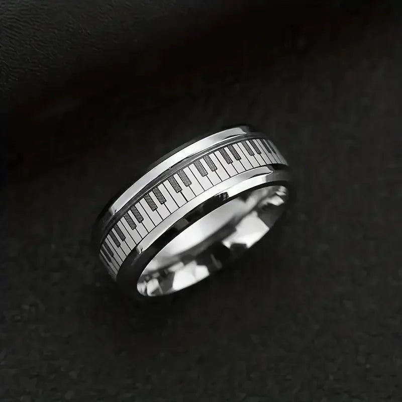 Retro Classic Style Pano Keys Titanium Steel Men's Rings Men Band Rings