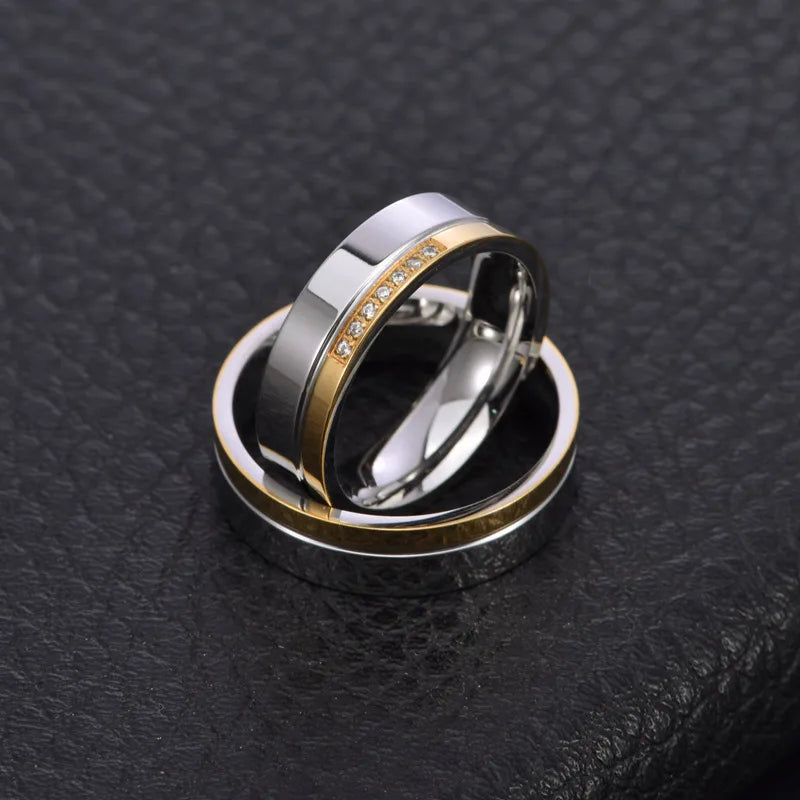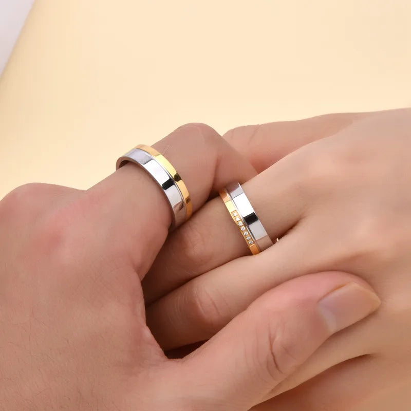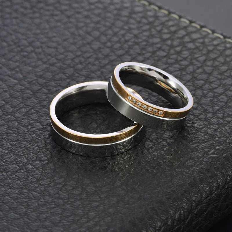 Simple Style Color Block Titanium Steel Inlay Zircon Couple Rings Men Band Rings - 5 / Gold Diamond