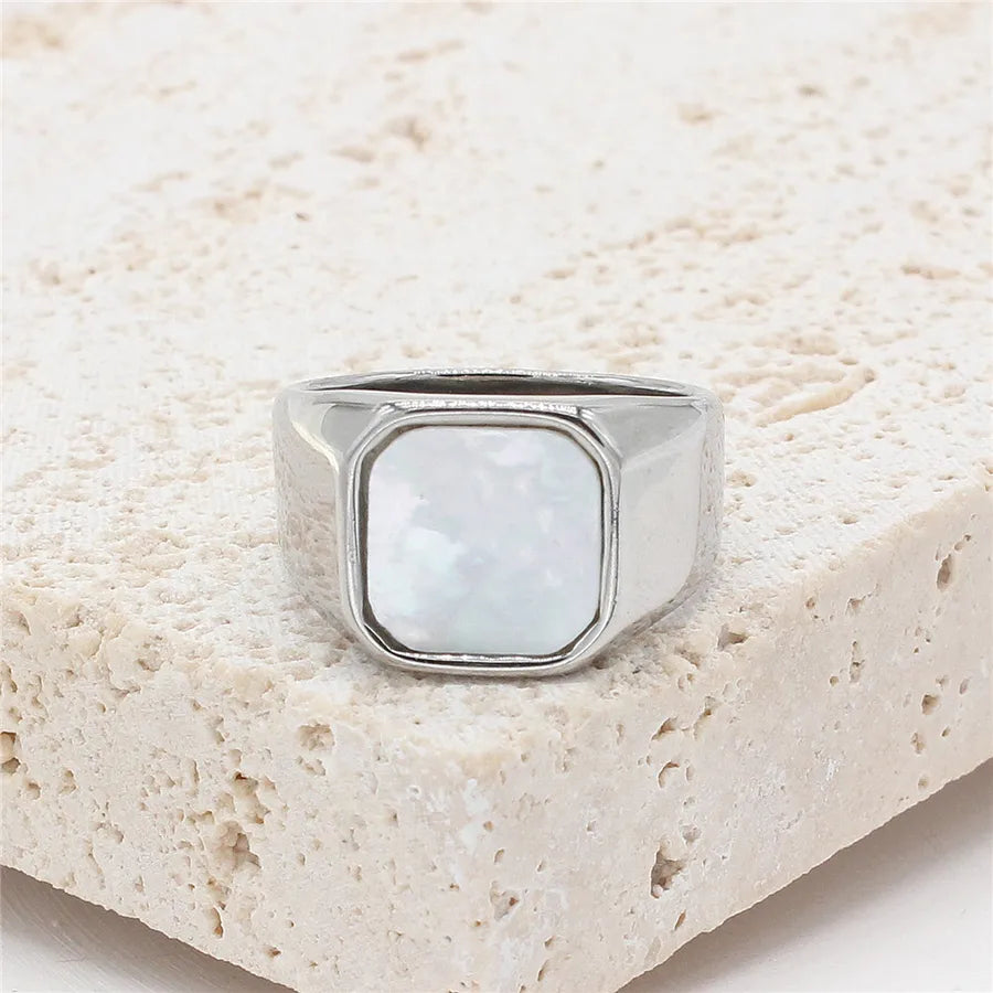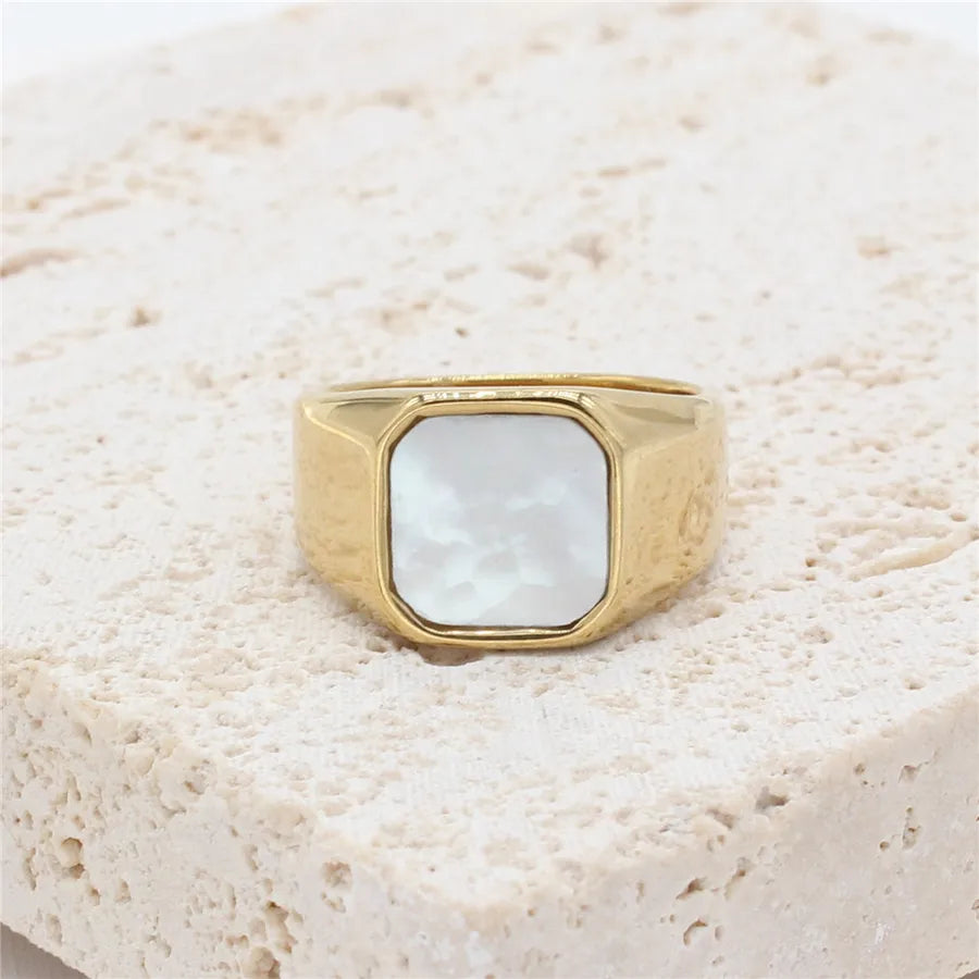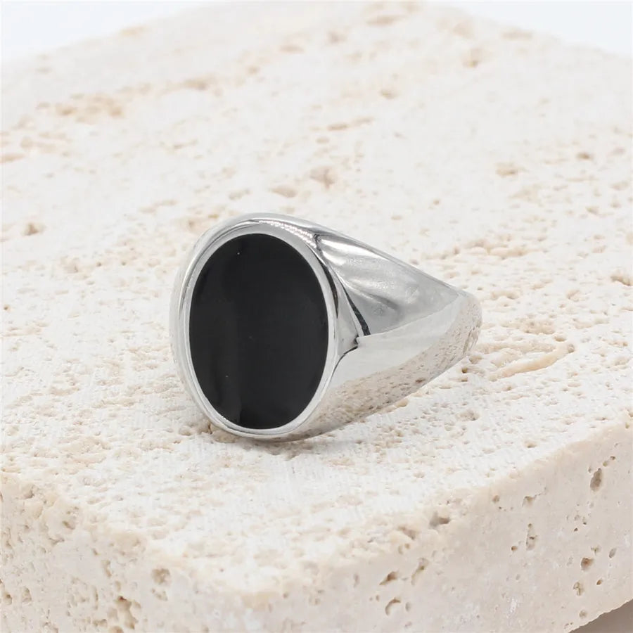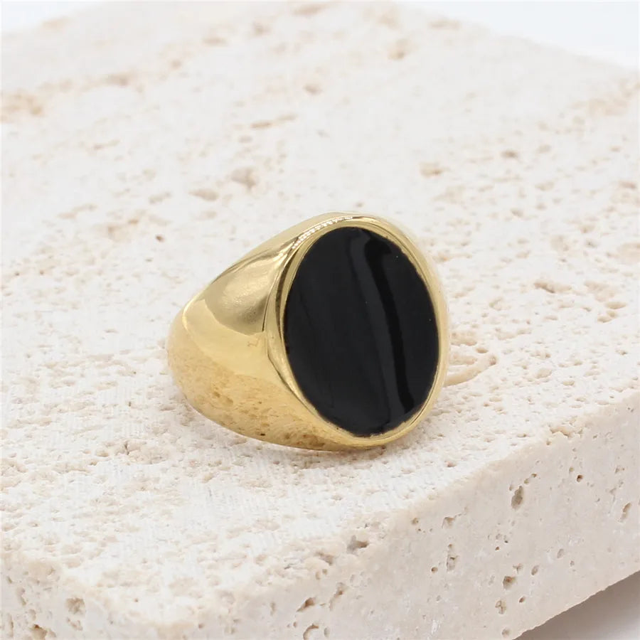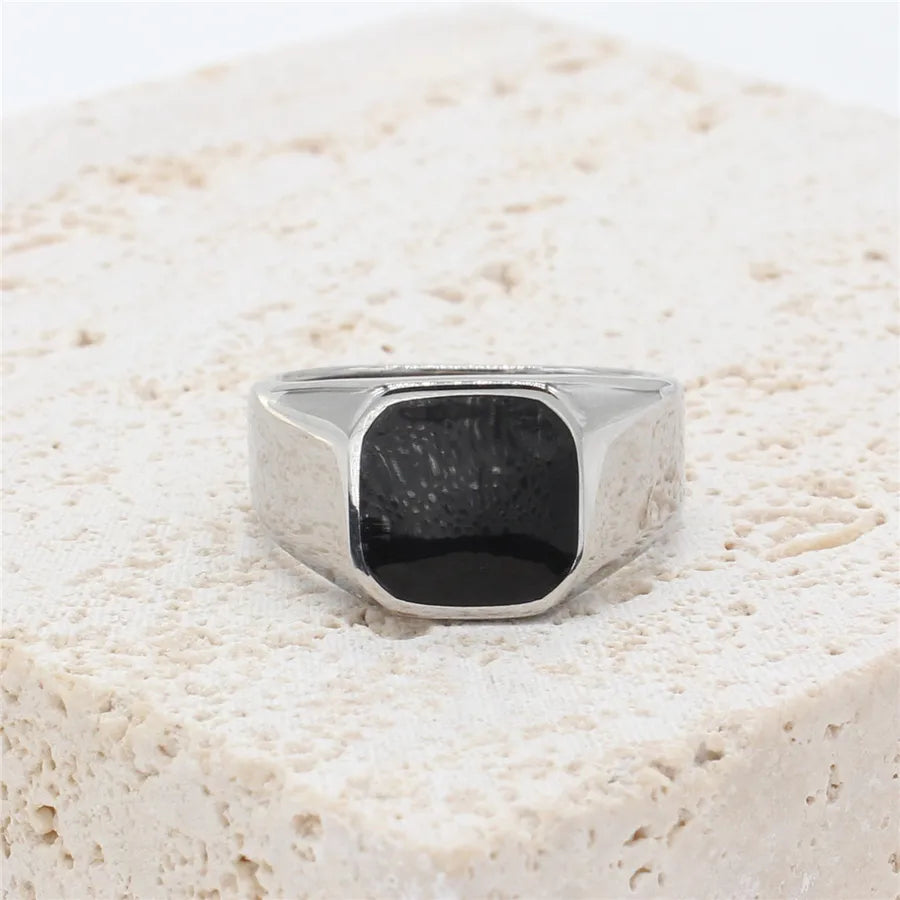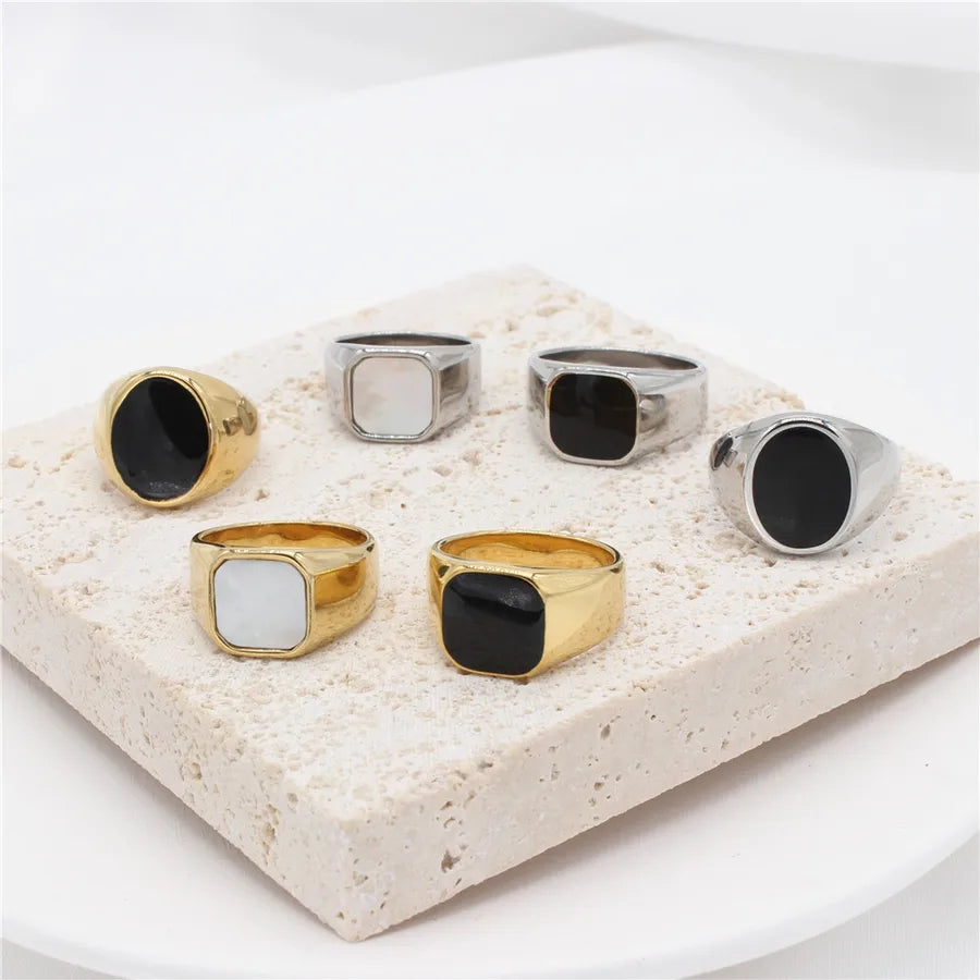Simple Style Geometric 304 Stainless Steel Shell 18K Gold Plated Unisex Rings - 7 / Steel Color Square Black Oil