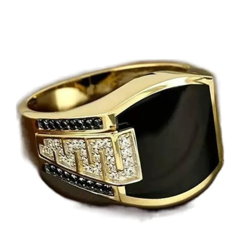 Simple Style Geometric Alloy Inlay Gem Rhinestones Men's Rings - 6 / Ajz1809 Gold