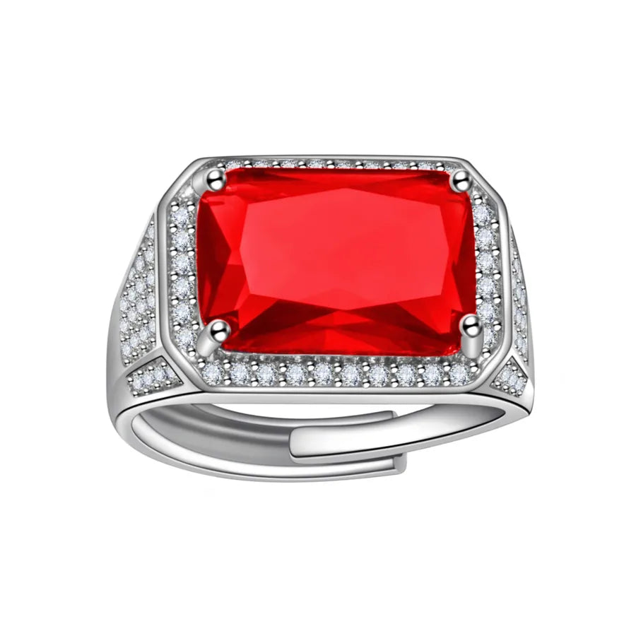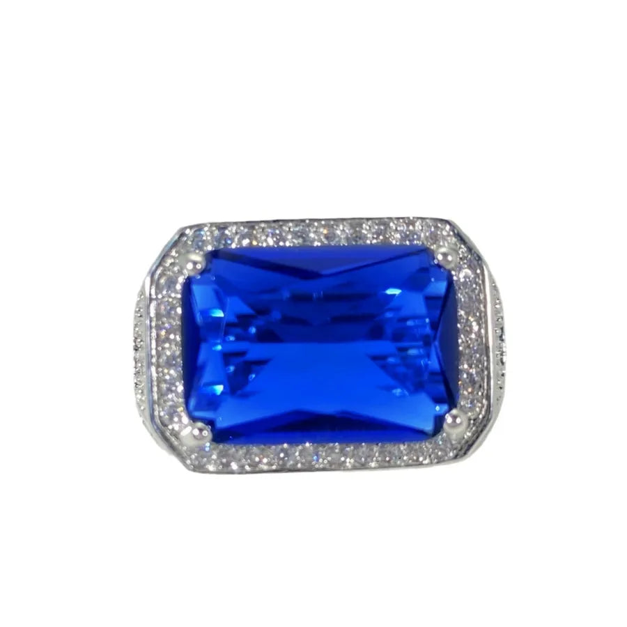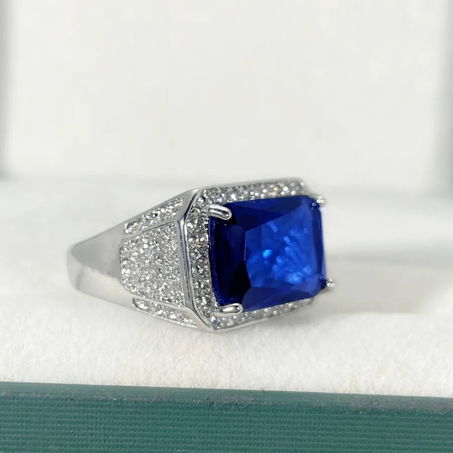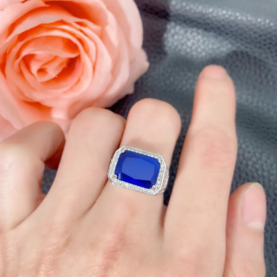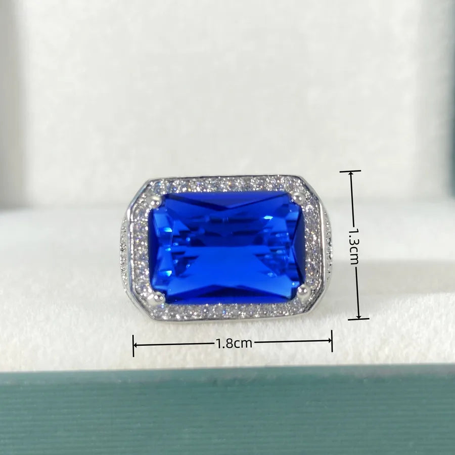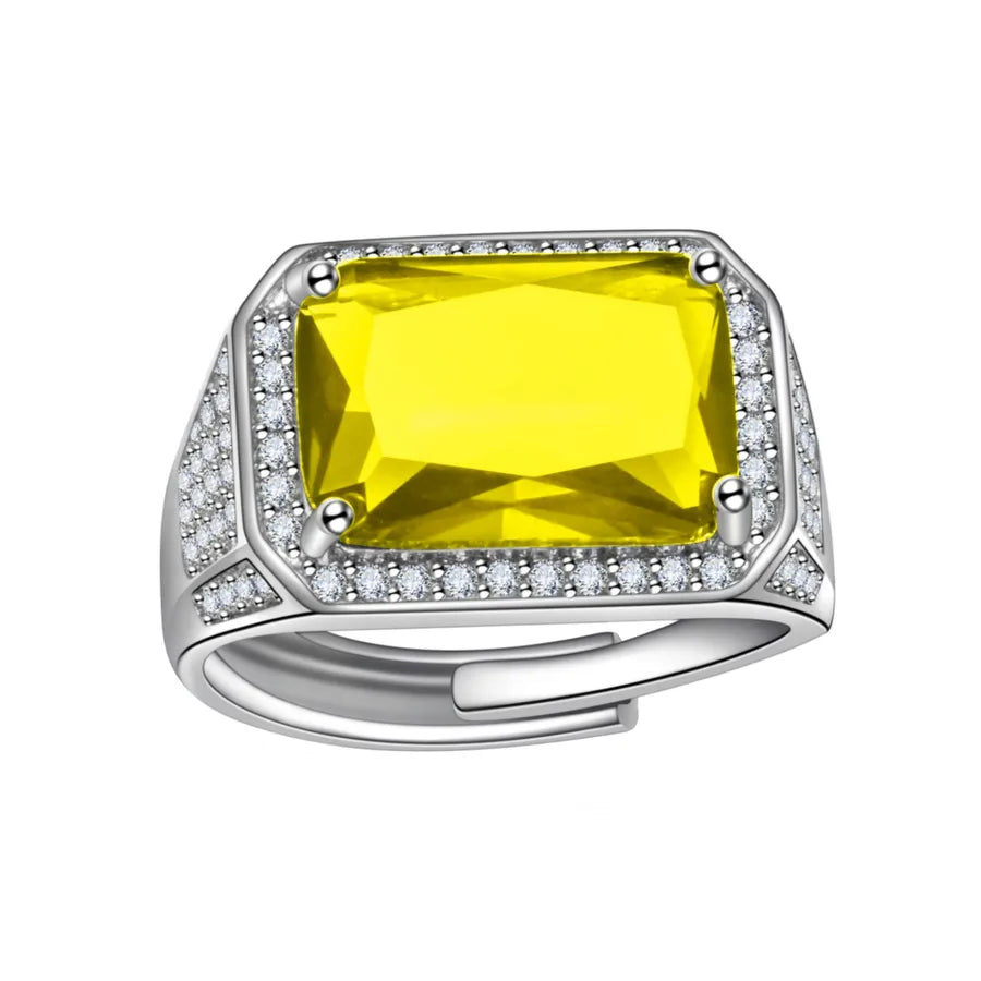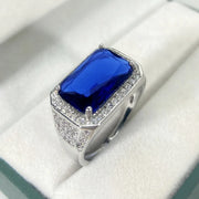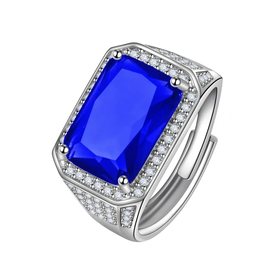 Simple Style Shiny Rectangle Copper Inlay Gem 18K Gold Plated Unisex Open Rings - Adjustable opening / Dark Blue Rhinestone Ring [White Gold Color]]