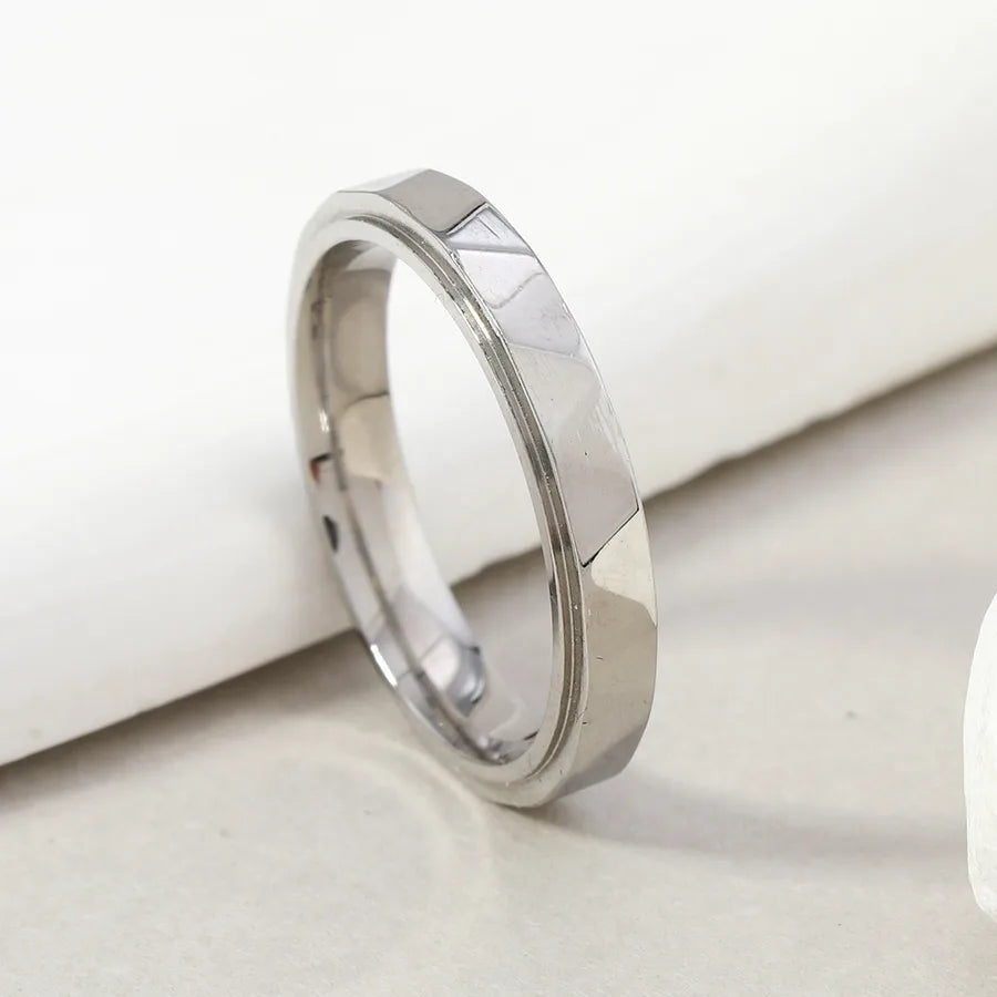 Streetwear Geometric 304 Stainless Steel Plating Unisex Rings Men Band Rings - One Size / 4mm Steel Color (V-Shaped Edge)