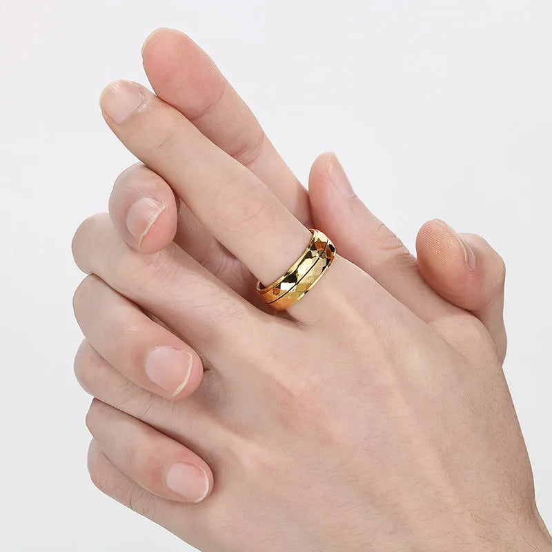 Vintage Style Simple Style Commute 304 Stainless Steel 18K Gold Plated Men's Rings - 8 / Gold Kr108244-GC