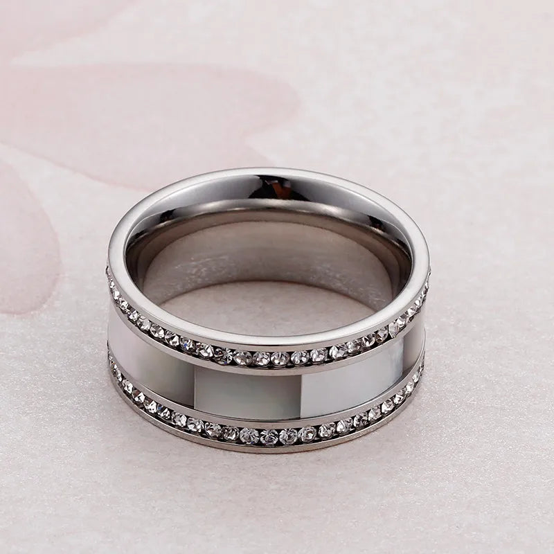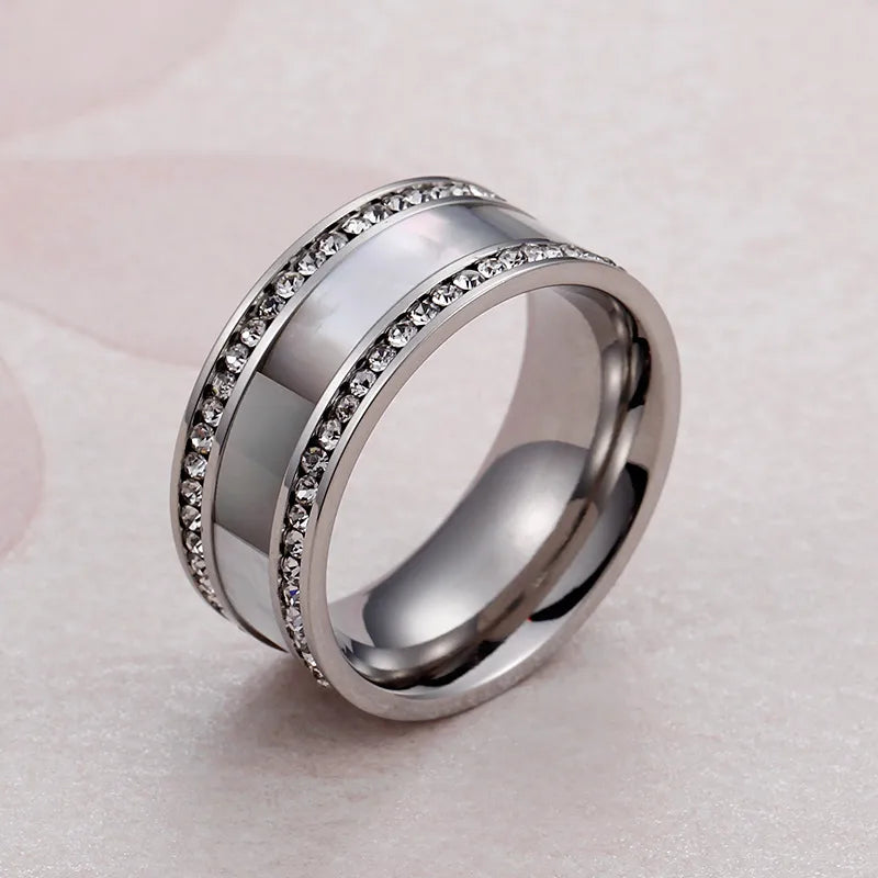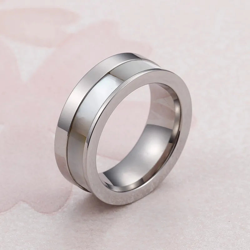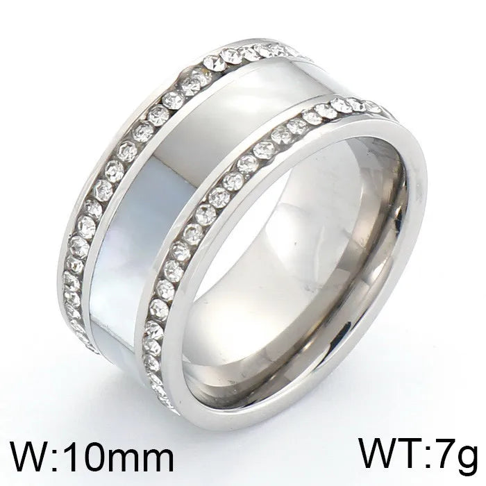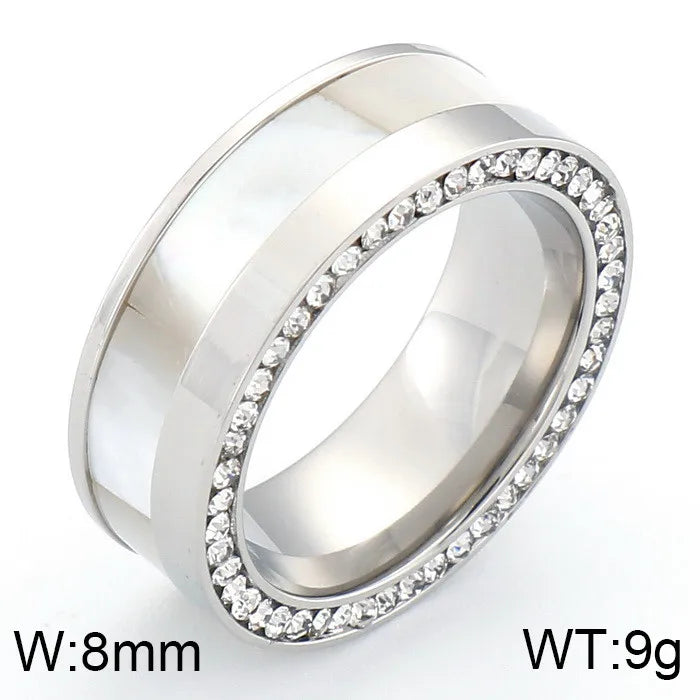 Wholesale Jewelry IG Style Geometric 304 Stainless Steel Shell Polishing Inlay Rings - A / Size 8