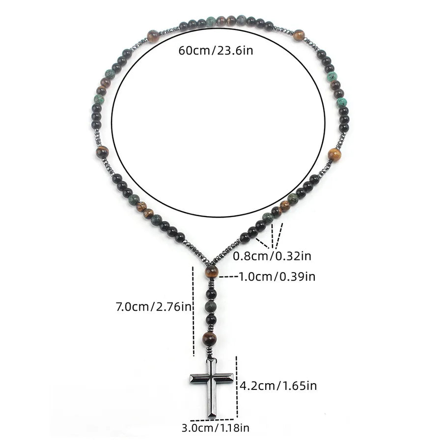 Chinoiserie Retro Ethnic Style Geometric Cross natural stone Beaded Polishing Men's Pendant Necklace - African Pine No. 1 60cm